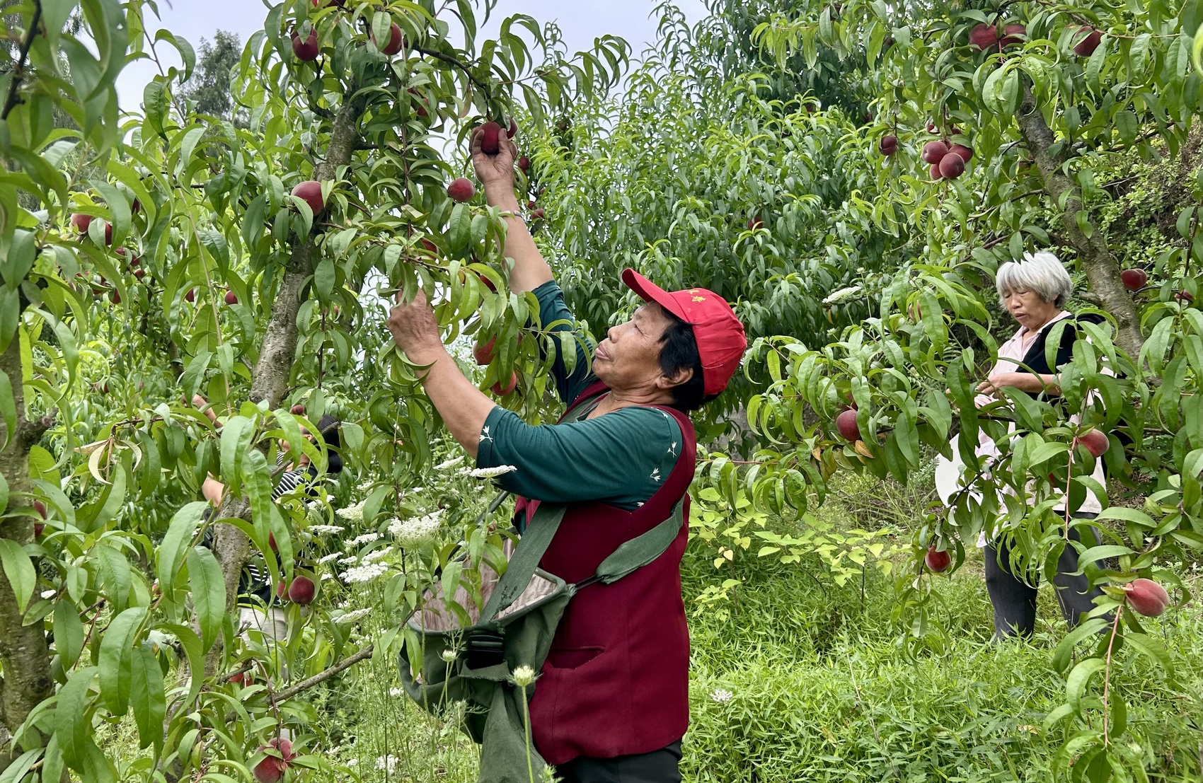 “你看,这是试验园。”盛池镇上果家庭农场负责人周德友指着350亩桃园告诉笔者,为持续提升产品竞争力和产业效益,他远赴山东等地学习先进种植技术,并于2023年建成品种试验园,引进试种28个桃子新品种。目前,已有10余个品种成功挂果,其余品种预计明年迎来丰收。