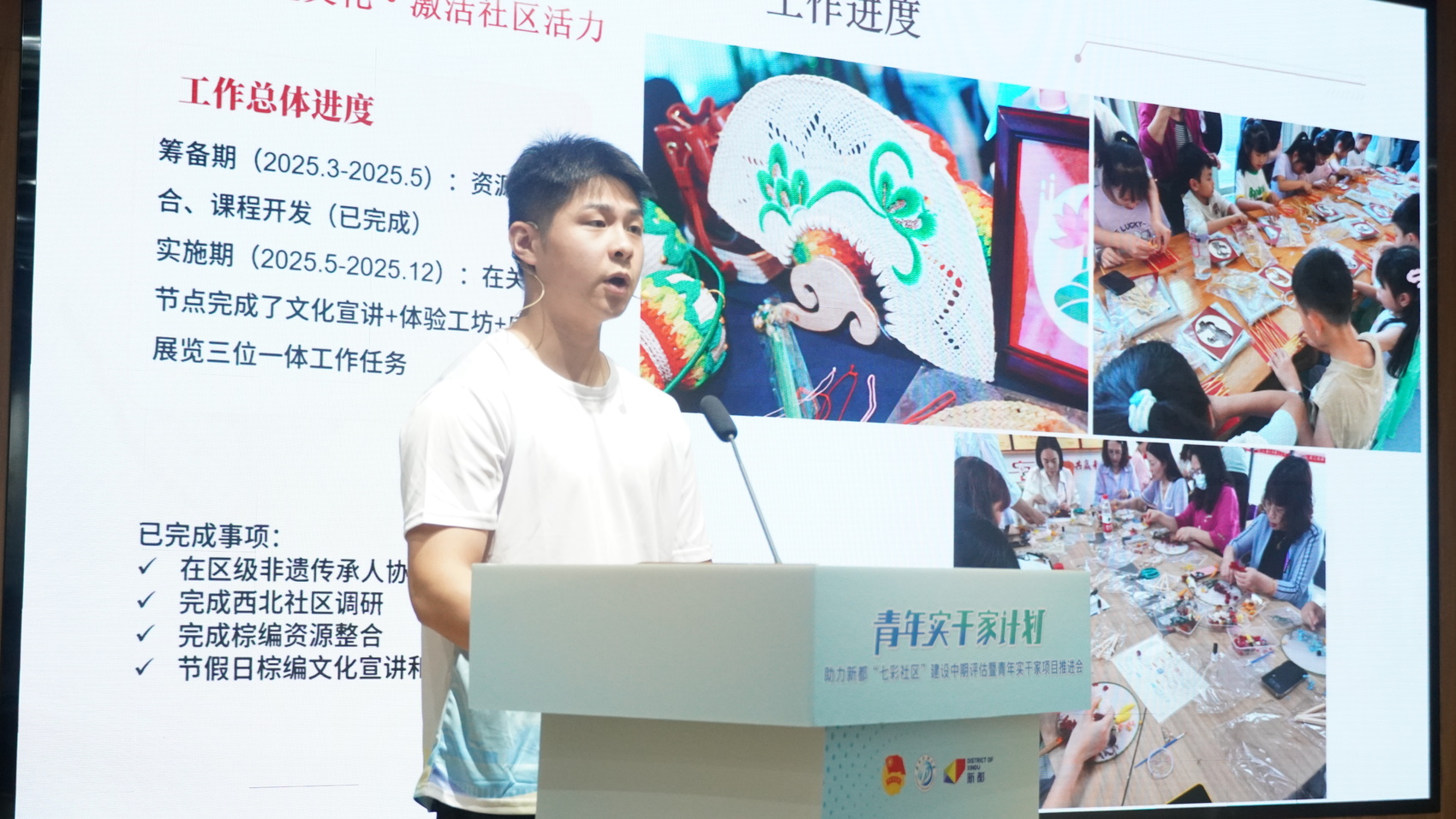 7月2日,新都区新时代文明实践中心内涌动着青春气息。一场聚焦基层治理与青年实践的中期评估暨青年实干家项目推进会现场在这里举行。来自西南石油大学、四川音乐学院、成都医学院的硕博生志愿者齐聚,展示半年来的微项目成果。