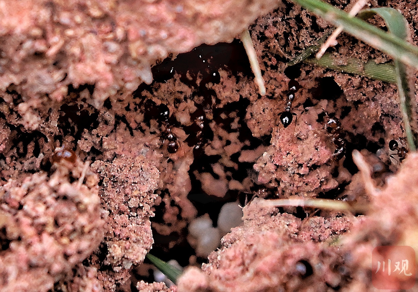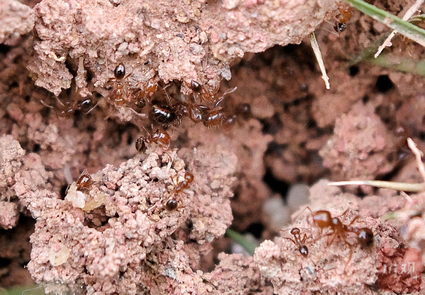 蚁巢内的红火蚁。