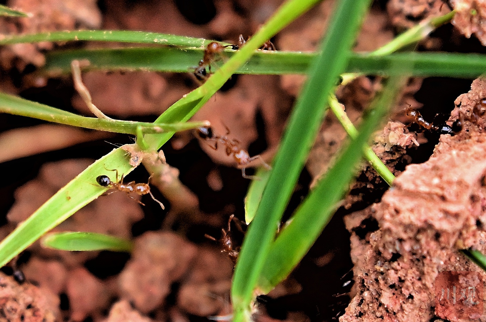 在草枝上攀爬的红火蚁。
