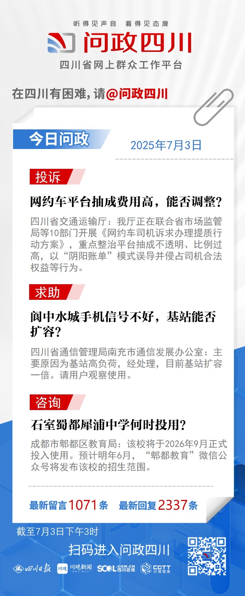 问政四川网友提问:家人是网约车司机,网约车平台只提供一个后台服务就要抽取20%—30%的抽成费用,再扣除停车费、高速费、加油充电费、汽车维修费、保险费等后,真正到司机手上的钱很少,请政府出手协调整治网约车平台抽成问题。