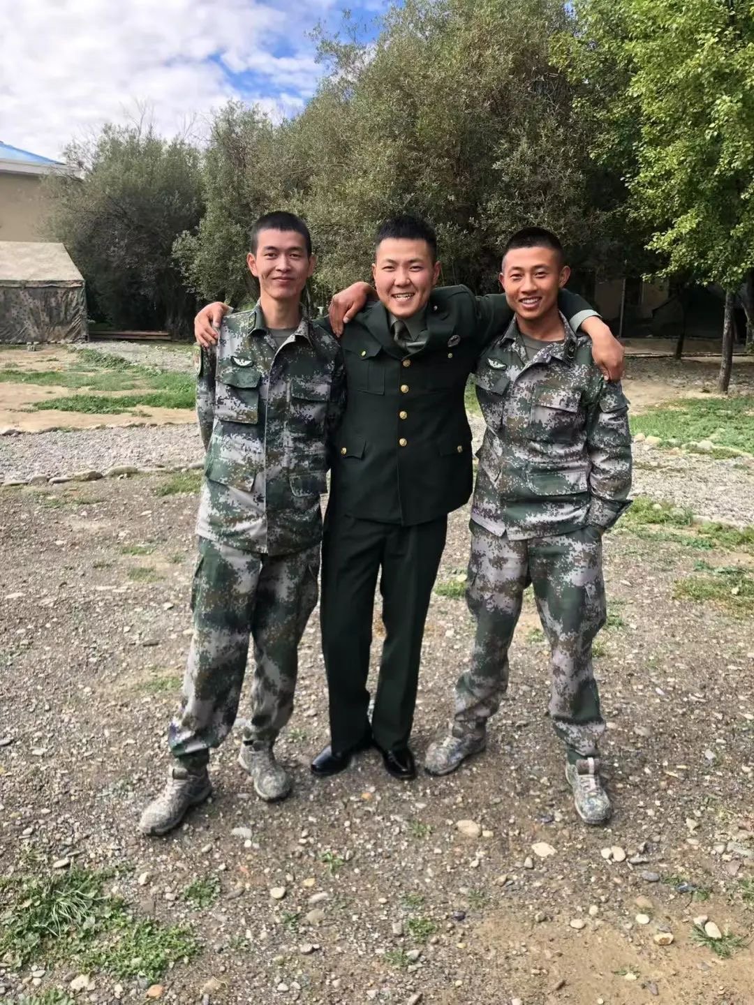 胥飞(中)与战友在一起。受访者供图