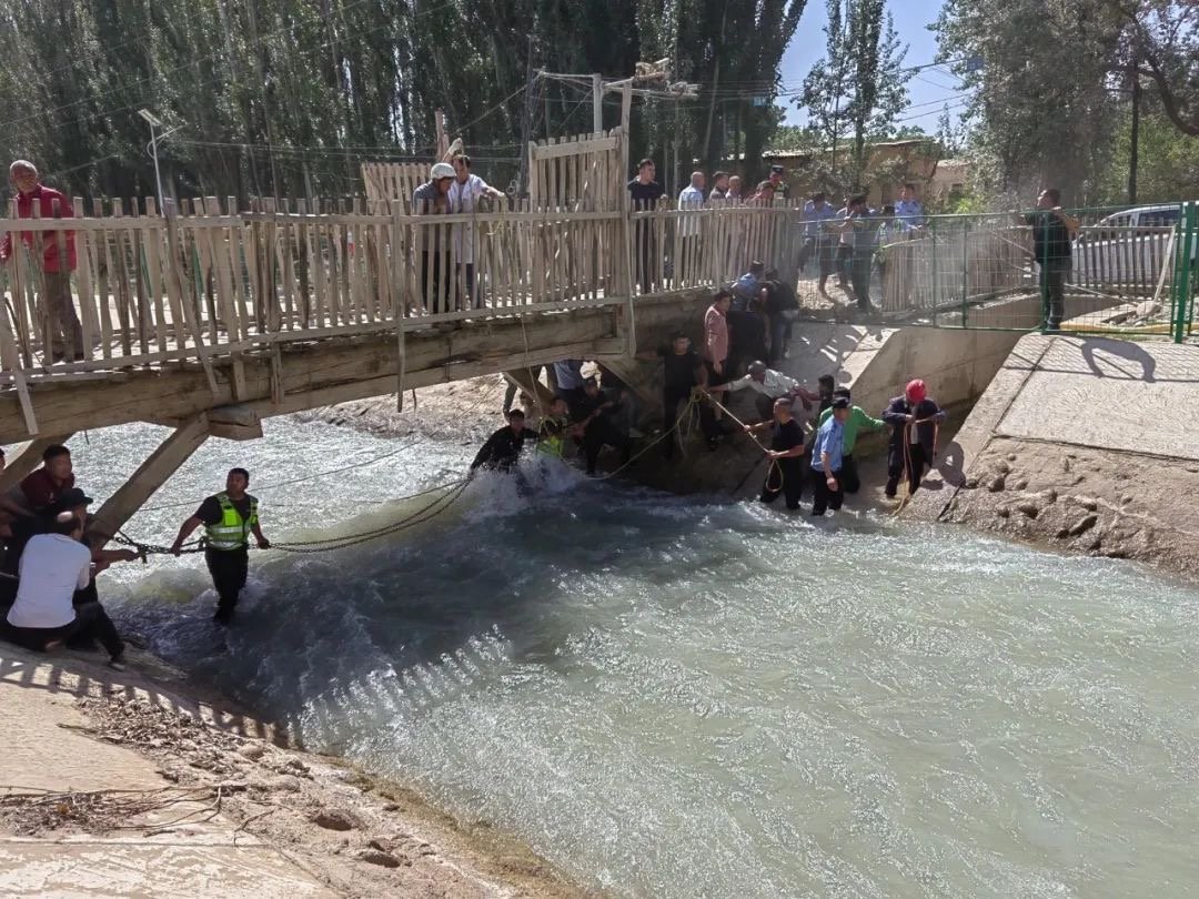 今年6月19日11时45分,在新疆皮山县桑株镇艾日格勒村,从事基建工作的胥飞和2名工友准备乘车离开时,突然听到有人呼救,他们立即下车查看,只见水渠中一名落水者正在湍急的水流中挣扎。