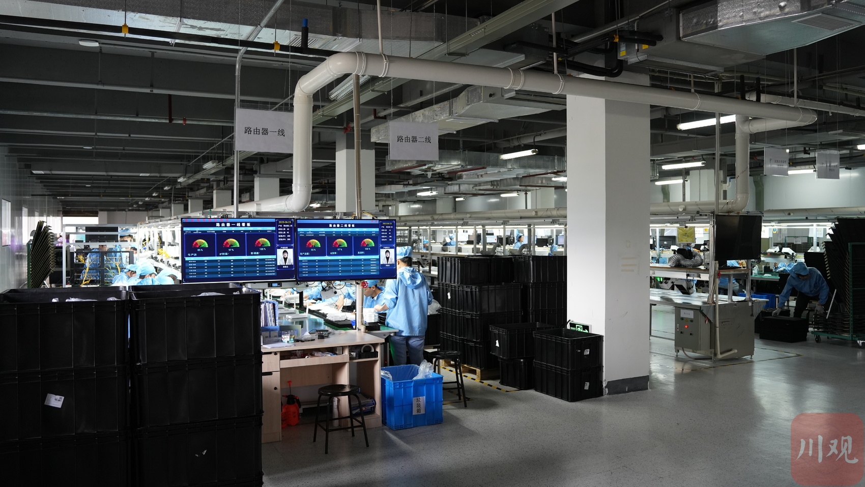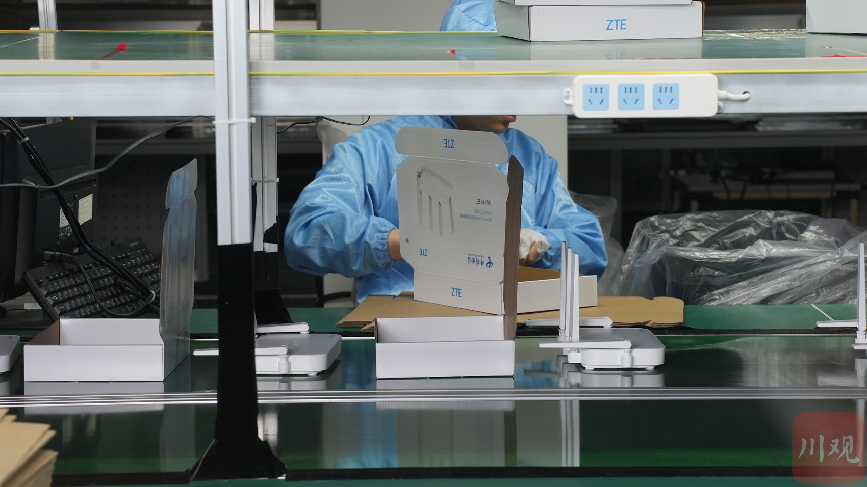 7月3日,在宜宾三江新区的宜宾东方拓宇科技有限公司(以下简称东方拓宇公司)路由器生产车间内,天线、外壳、主板等零部件在传送带上平稳移动。80多名操作工人正熟练地进行组装、调试和包装工作,一台台路由器迅速完成下线。“这是中兴通讯首批30万台路由器生产订单,要赶在本月中旬完成,目前已完成了一大半。”该公司制造运营部负责人石鹏介绍。