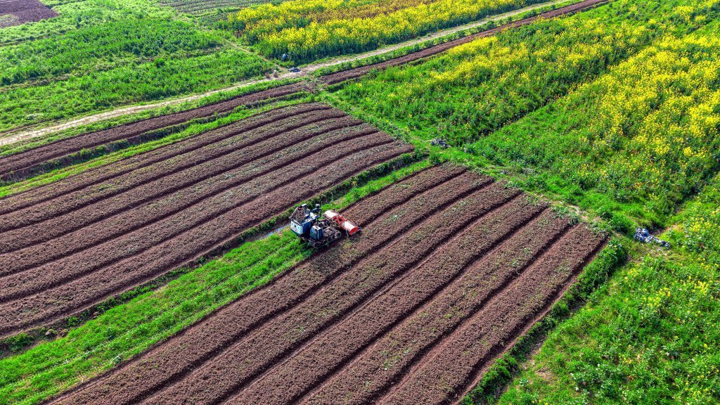 2月26日,资阳市安岳县石桥街道戏楼村,村民驾驶旋耕机在翻整田地。 C视觉摄影师 杨康忠 摄