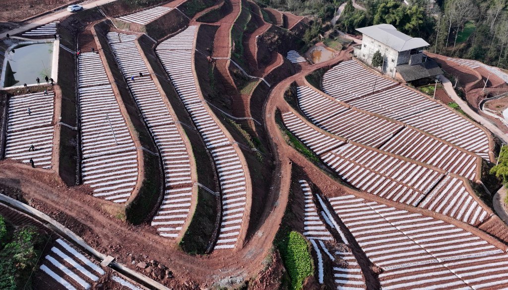 2月26日,巴中市南江县元潭镇下坝村玉米高产攻关示范基地,村民为种植春玉米做准备。C视觉摄影师 肖定怀 摄
