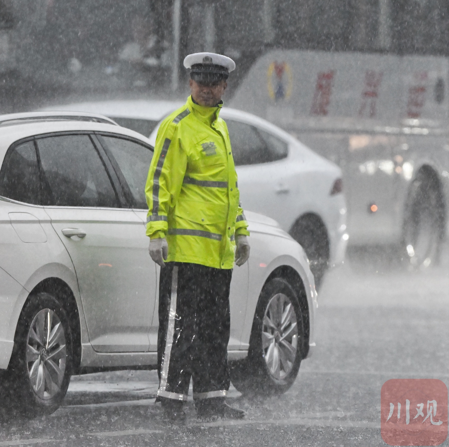 成都交警提醒广大驾驶人,雨天行车一定要轻打方向,缓踩刹车,提高警惕,切不可疏忽大意。出行路上,安全第一。