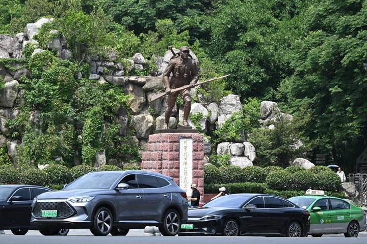 地处成都市中心的昔日抗战川军出发地人民公园外车水马龙,熙来攘往。公园门口屹立着由著名雕塑家刘开渠设计的“川军抗日阵亡将士纪念碑”,碑上的无名英雄铜像身背大刀、斗笠,手握步枪,目光坚毅,守望着今日之盛世。