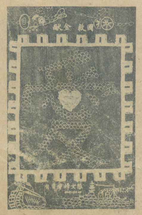 1944年7月,四川自贡妇女用捐献的金戒指、金手镯等缝制的”爱“字图案