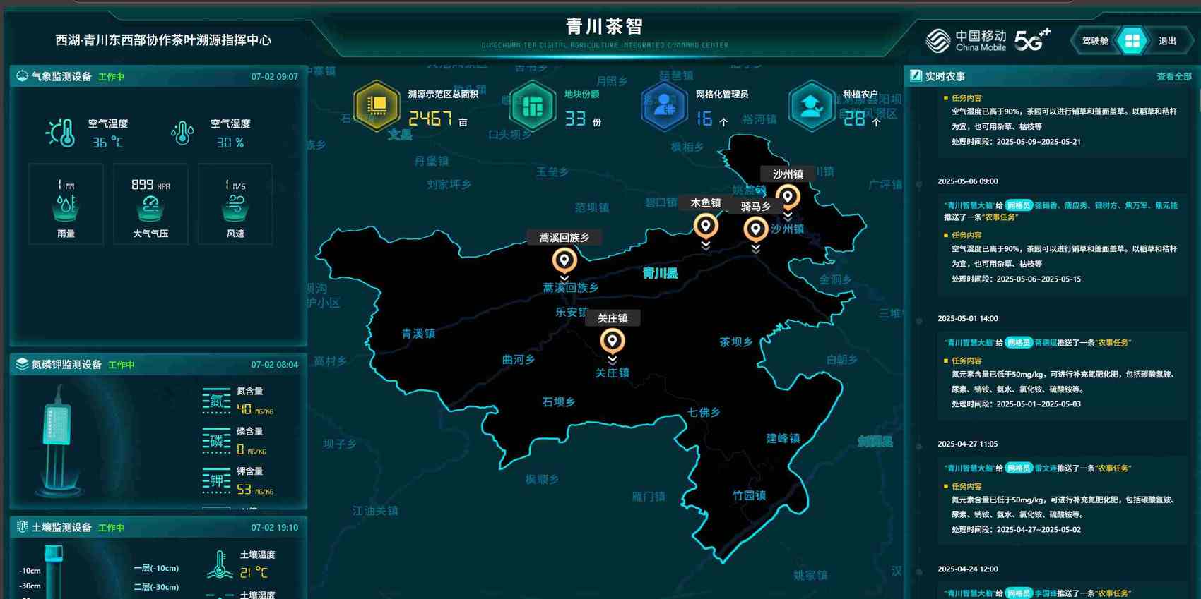截至目前,青川县已建成数字化茶园2467亩,实现了对“白叶一号”的精准管理。