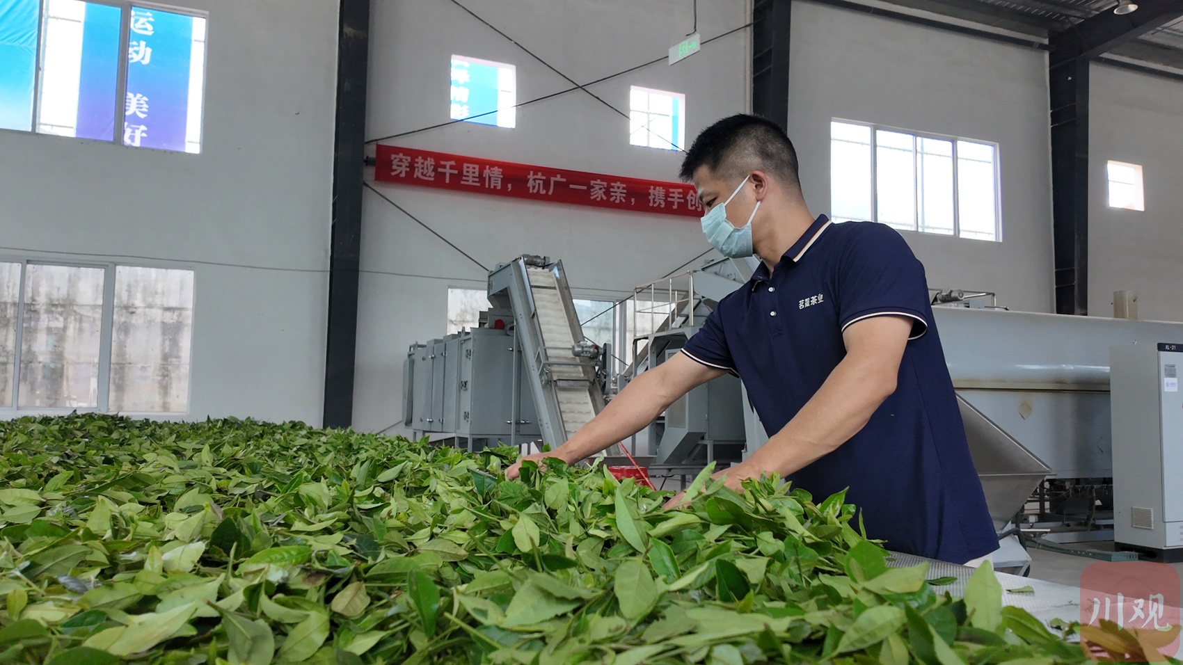 7月1日,广元市青川县蒿溪回族乡地坪村“杭州—广元茶叶综合示范产业项目”里,加工车间机械轰鸣,正在炒制夏秋茶叶。去年底,地坪村引进外地茶企,开发夏秋茶,延长茶产业链条,带领群众增收致富。该村110余亩“白叶一号”基地也包含在其中,将随着今年的夏秋茶,销售到国外。