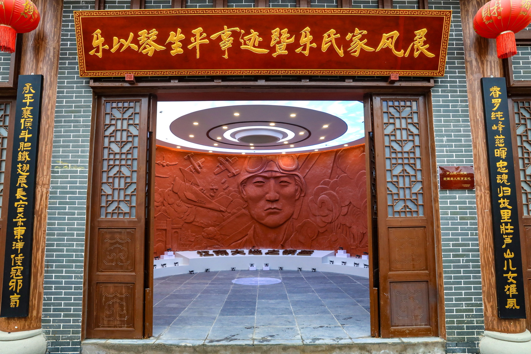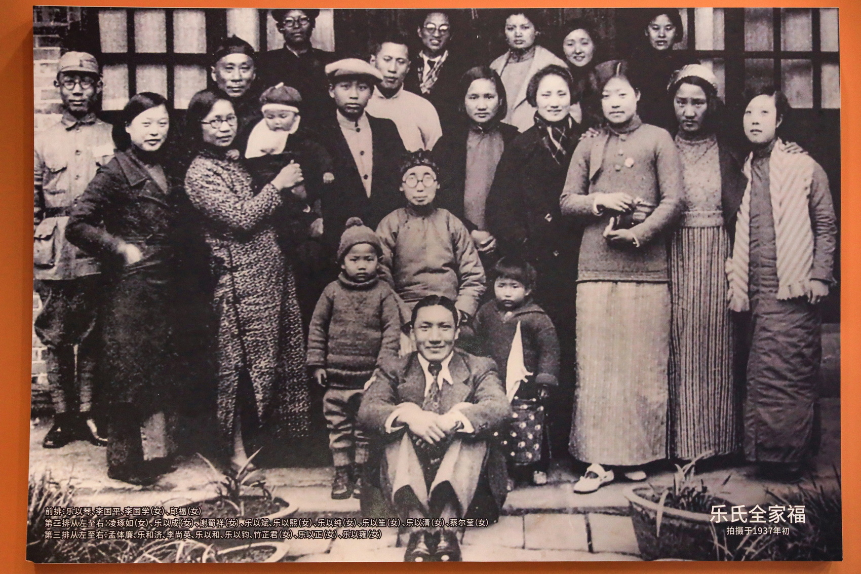 乐家家宅旁,是乐以琴生平事迹暨乐氏家风展,展览以一张全家福为结尾。1937年初,乐以琴回家过年,在抗战前拍下这张照片。这位大男孩抱着双膝,笑着坐在整个家族的最前面,这也是他和家人的最后一张照片。芦山县博物馆讲解员宋越悦介绍,当时乐以琴就和亲人交代,父母好在有兄弟姐妹照料,报效祖国也更能一往无前。