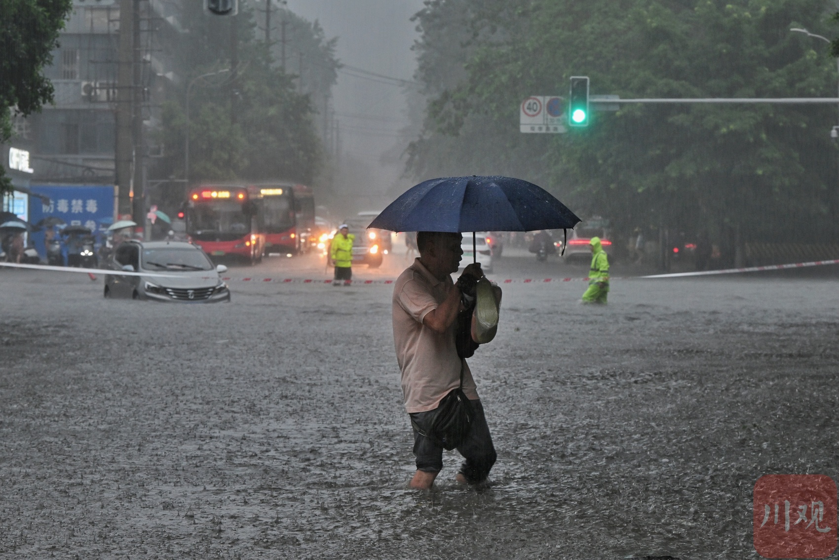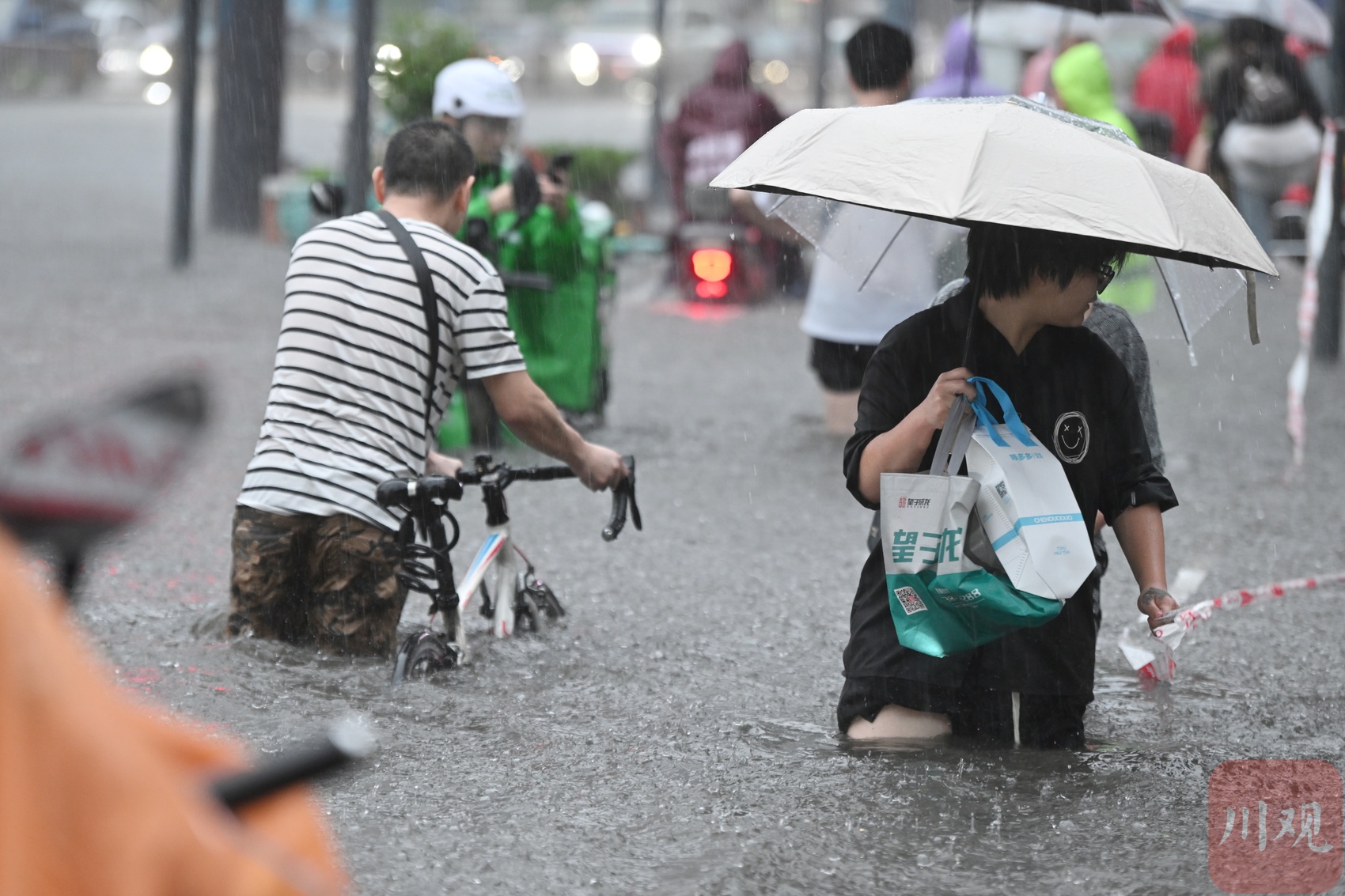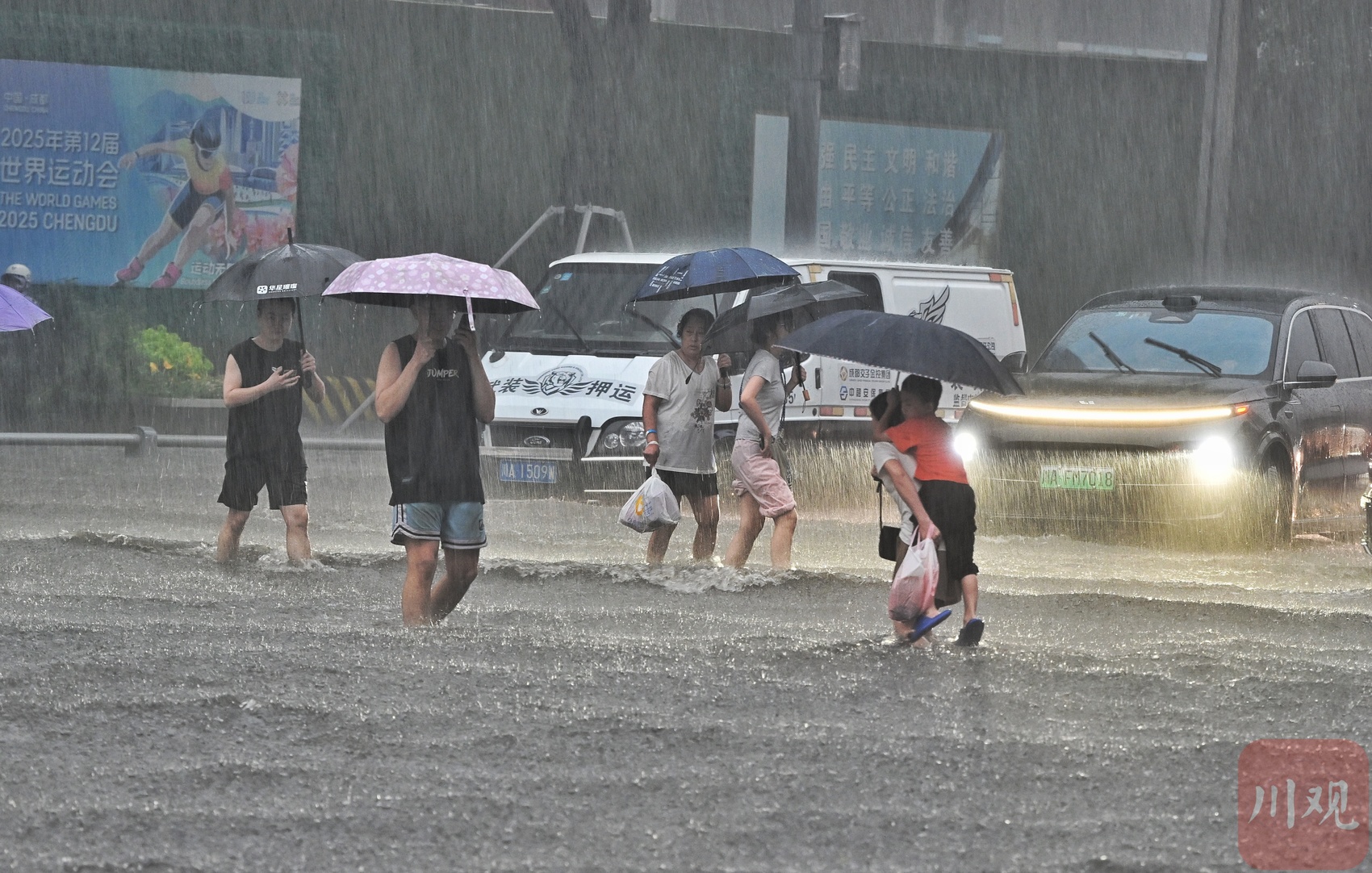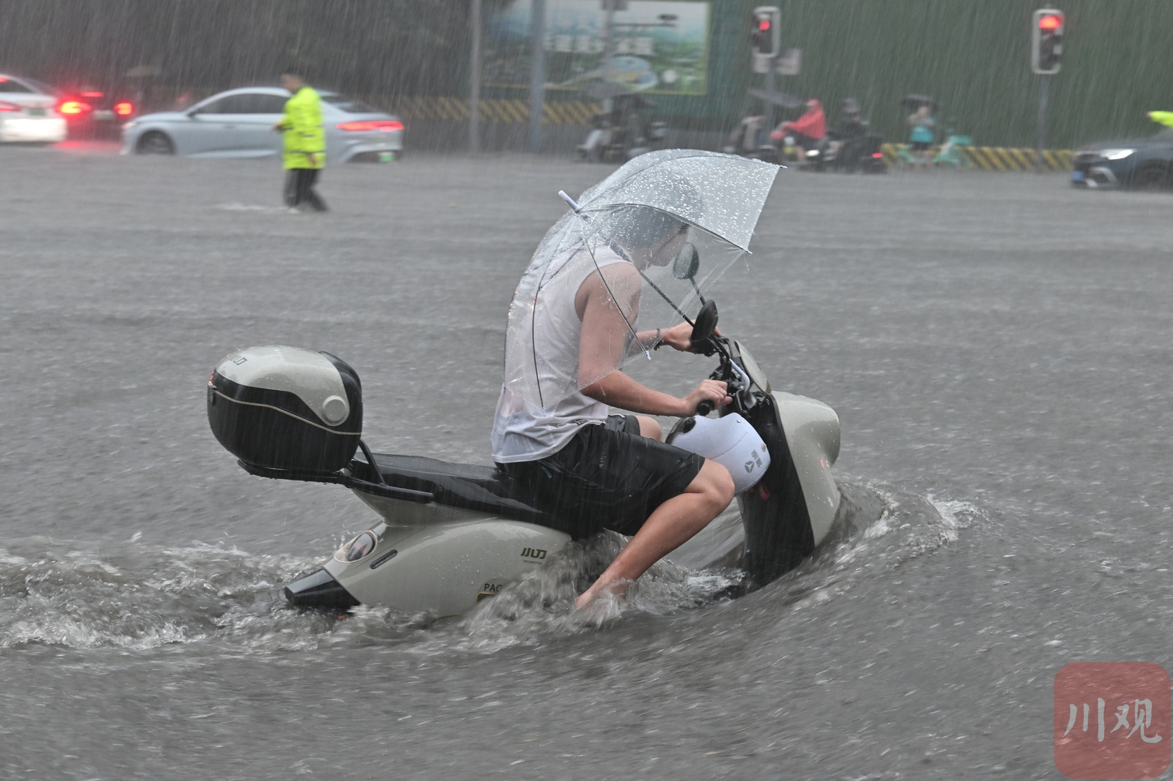 7月3日下午,成都市区突降暴雨,导致蜀都大道东风大桥至水碾河、水碾河至双桥子路段双向主干道出现积水。