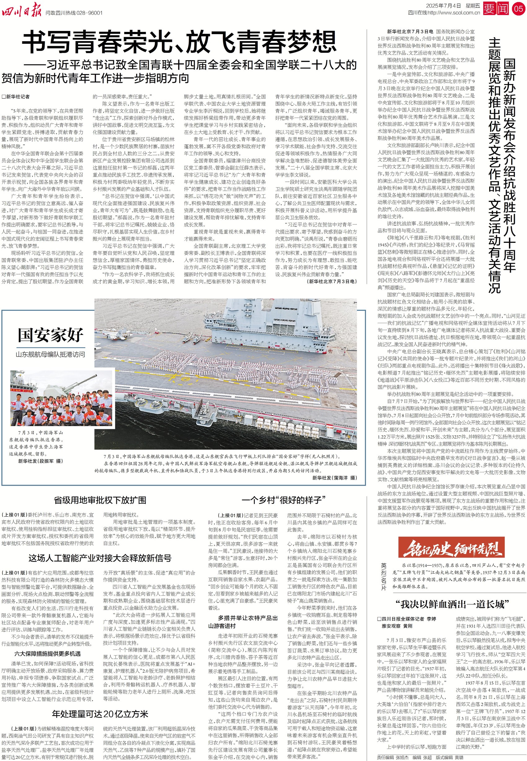 一场主题展览、一台文艺晚会、一场美术作品展、多场舞台艺术作品展演、一批广播电视和网络视听作品和节目、大批经典视听作品……昨日,国务院新闻办公室举行新闻发布会,介绍中国人民抗日战争暨世界反法西斯战争胜利80周年主题展览和推出优秀文艺作品、文艺活动有关情况。关注今日五版,看抗战胜利80周年系列活动的具体看点。