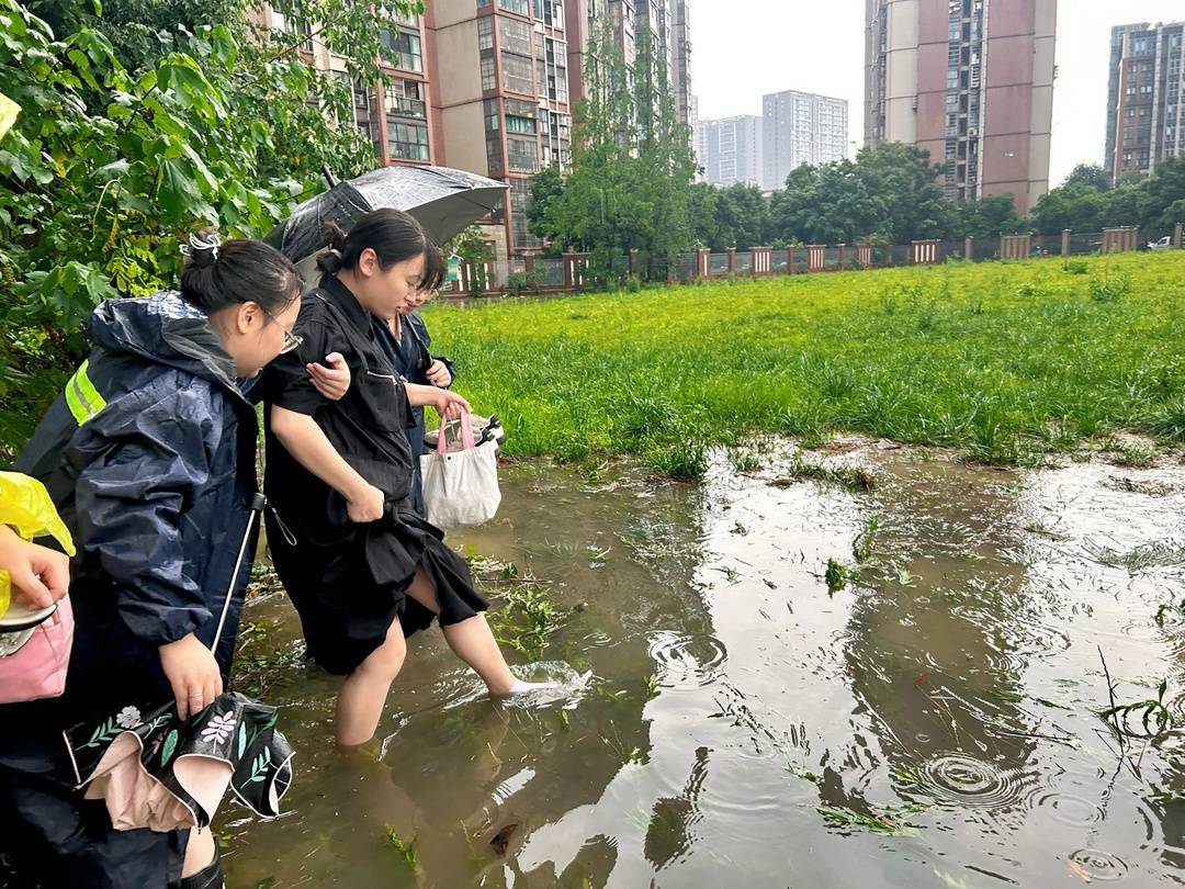 面对辖区多点爆发的积水险情,中和街道各社区因地制宜,展开了一场与洪水的“巷战”。