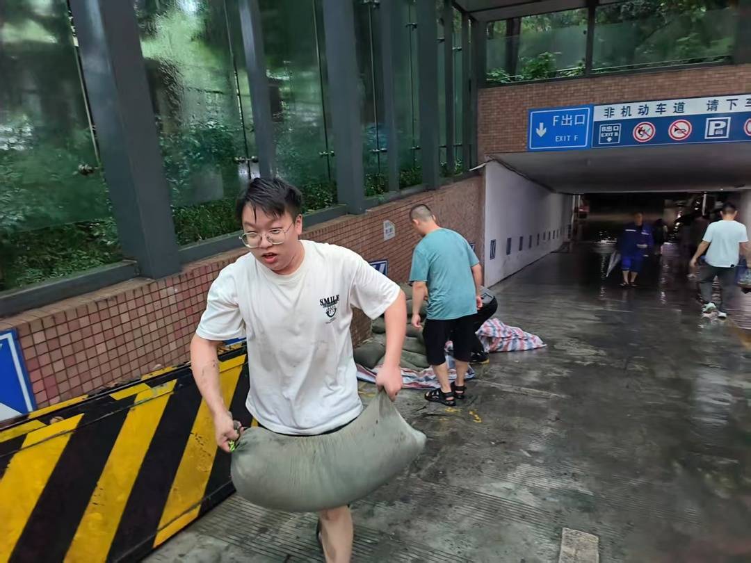 车库保卫战是重中之重:仁和社区协同楠香山物业,在车库积水区域紧急堆放沙袋,构筑防线,有效避免了车辆浸泡及次生事故;迎江社区在锦江帆影、十八步岛、华楠半岛等沿线地下室出现积水时,迅速组织抢险队伍调集设备全力抽排,并协助业主有序转移地下车库车辆。