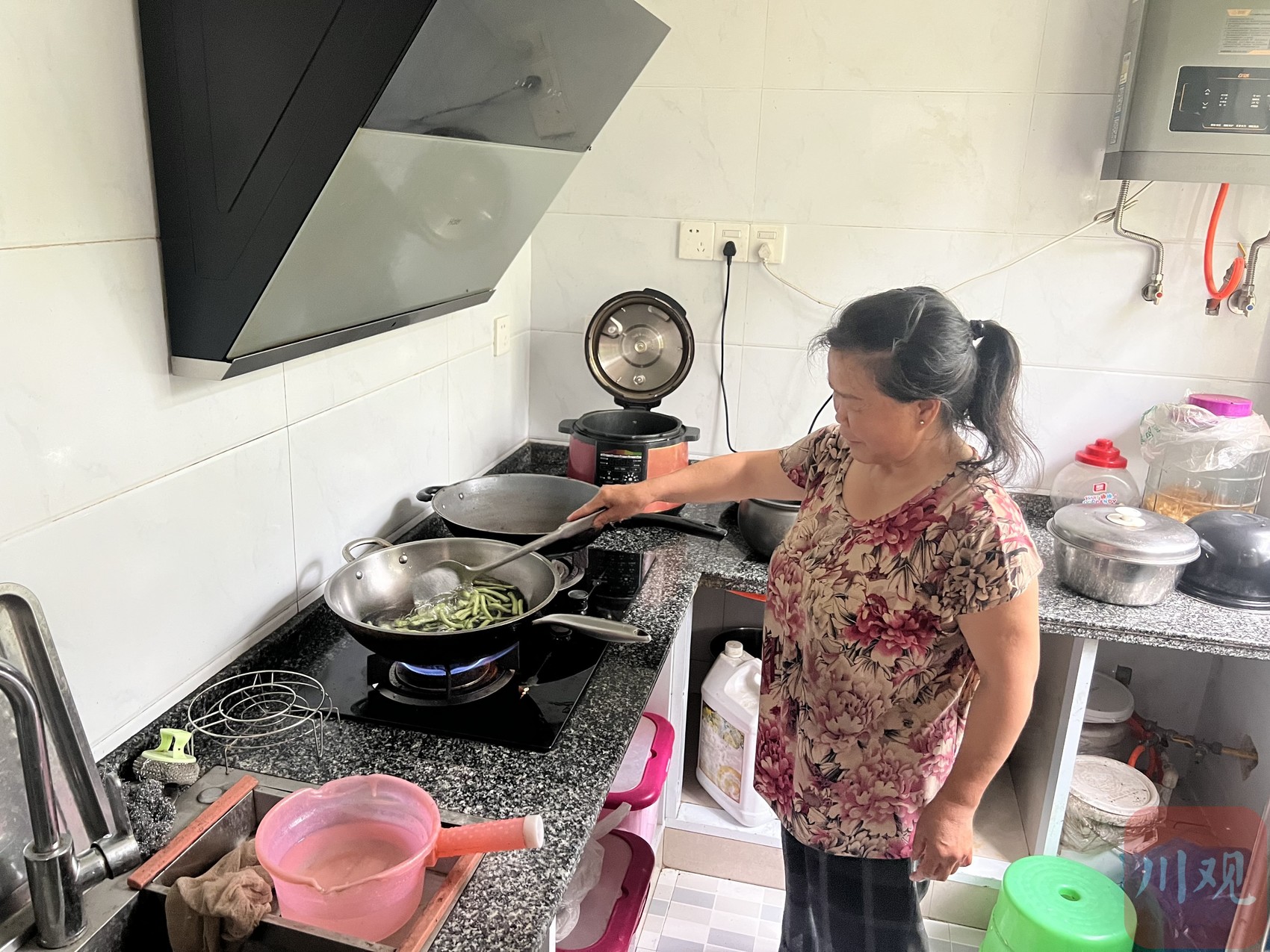 7月2日上午9点,巴中市巴州区平梁镇凤谷村,村民马仕国在自家厨房忙活,给前来帮忙插秧的邻居们做早饭。