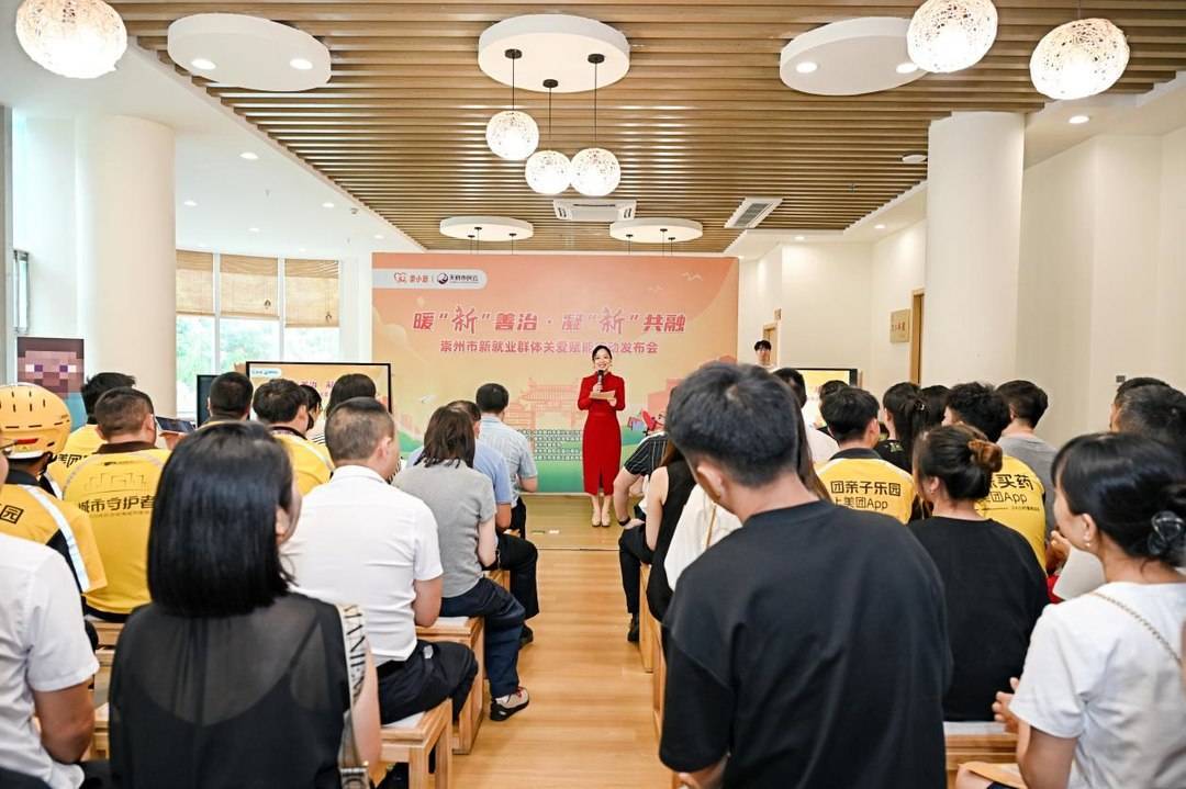 7月4日,崇州市举办“暖‘新’善治·凝‘新’共融”新就业群体关爱赋能行动发布会。本次关爱赋能行动聚焦快递员、外卖骑手等新就业群体,通过数字赋能、安全保障、社会关爱等多维度举措,推动其深度融入城市治理,共享发展成果。相关单位分管负责人、街道社区代表、暖“新”商家及骑手代表参会。