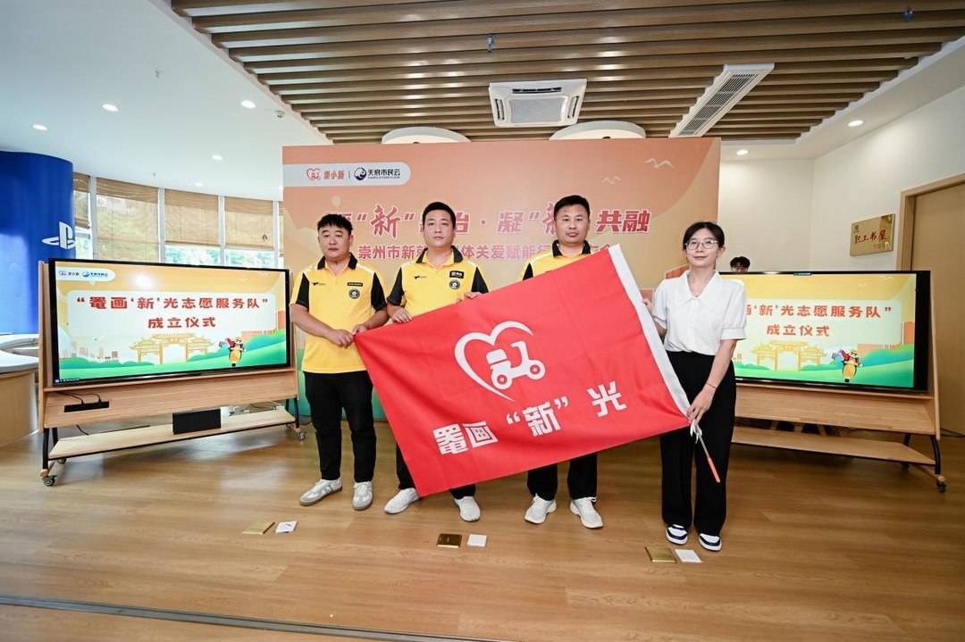 发布会现场,崇州市首支新就业群体志愿服务队——罨画“新”光志愿服务队正式成立并授旗。同步上线的“崇小新”数字服务平台核心功能“随手拍”,为骑手参与治理开辟便捷通道。骑手可通过该功能实时上报公共安全、环境卫生等十余类城市管理问题,化身城市“移动探头”。3名网约配送站长受聘为“特邀建议人”,将常态化收集、传递骑手群体诉求,助力治理精准化。
