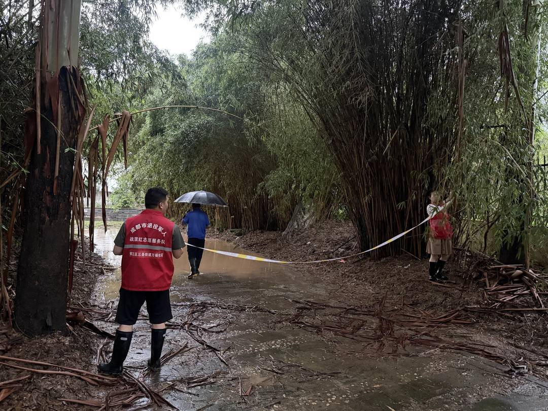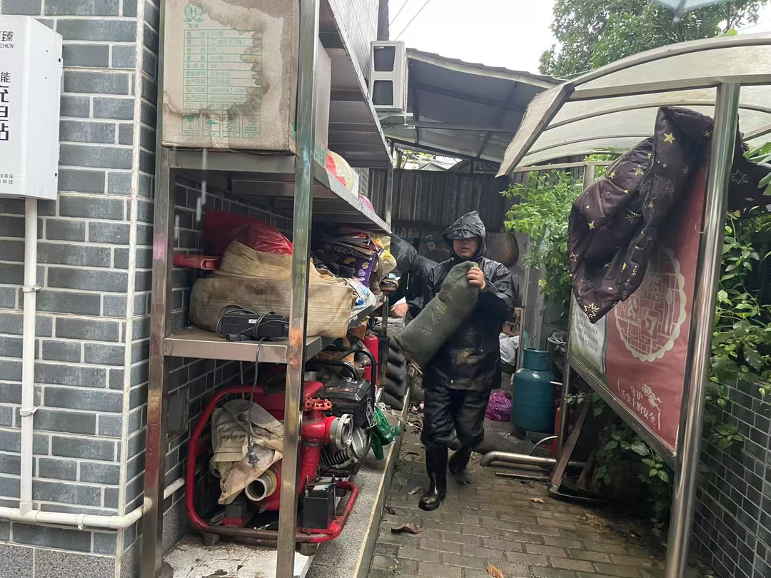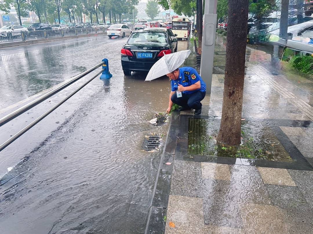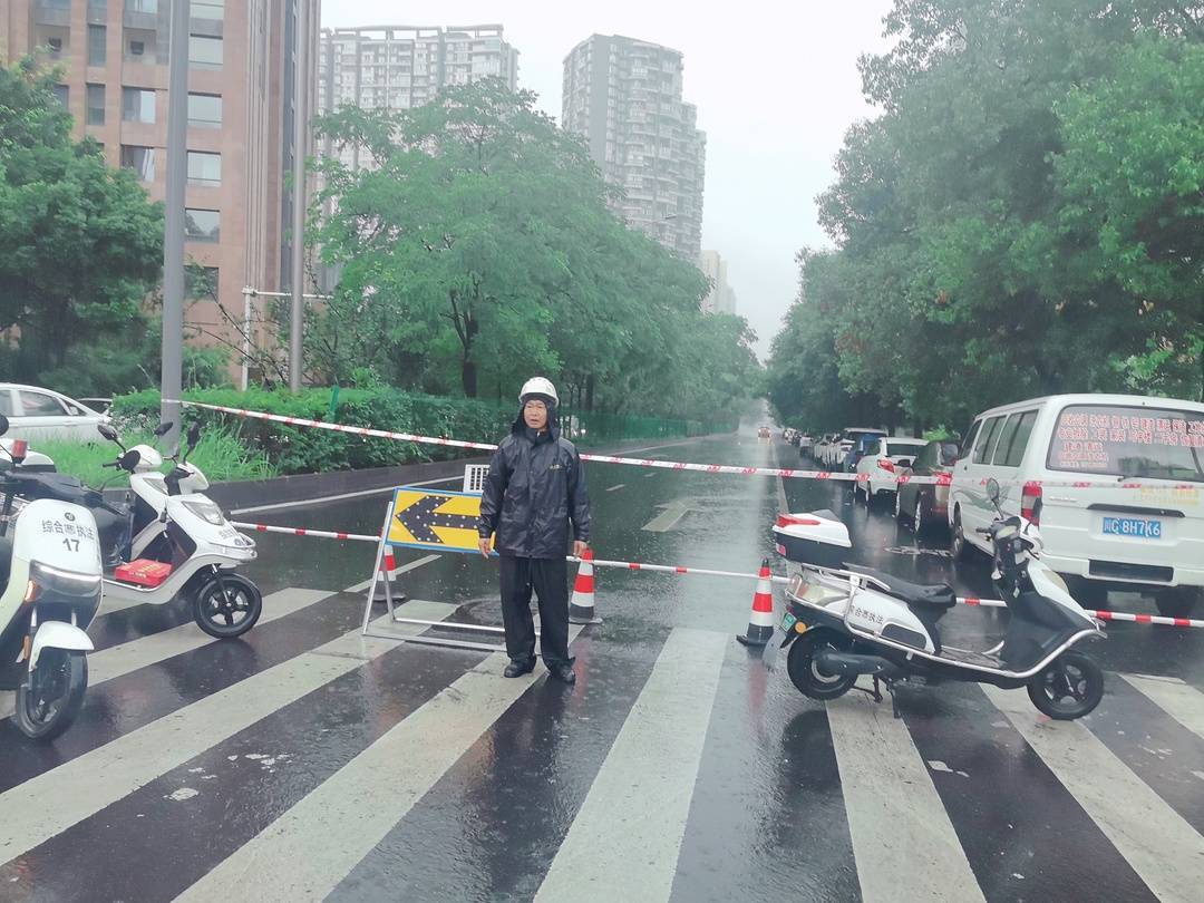 力量集结,联合攻坚。在街道党工委的统筹下,社区工作人员、街道城管执法队、街道应急力量与党员志愿者队伍协同作战。街道城管执法队作为重要力量,累计出动执法队员30余人次,通过设置临时警示标识、引导车辆绕行等方式,高效完成13处积水路段的交通疏导工作,并调配大型抽排设备协助市政及社区处理低洼区域积水,动态排查处置广告牌松动、树木倒伏等次生风险,切实筑牢城市运行安全屏障。