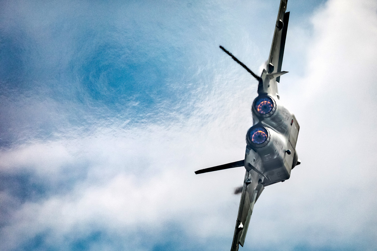 只见飞机拖着长长的尾焰,呼啸着从现场的无数双眼睛前滑过。加速,再加速,一眨眼的功夫,它便如一道闪电,带着呼啸,腾空而起,直插云霄。