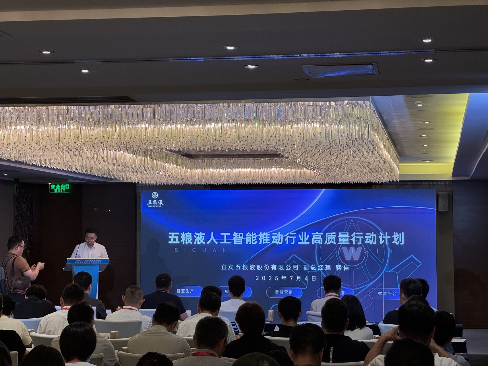 宜宾五粮液股份有限公司副总经理蒋佳分享了如何将人工智能技术运用在酒品生产当中。