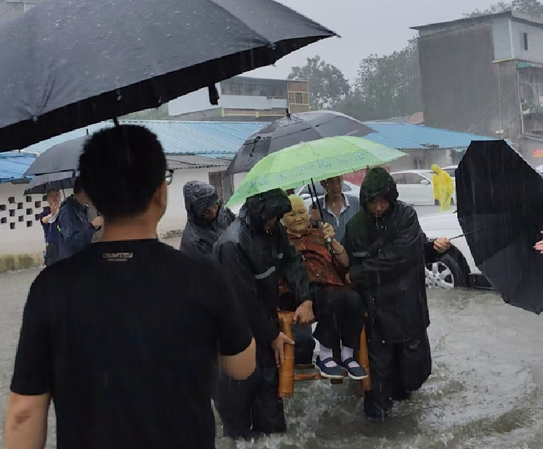 “水位暴涨,立即转移!”花果社区军民村的险情刺破雨夜。狮子山街道协调市政、交警、公安,发动周边物业小区力量立即开展排涝抢险工作。90岁李大爷被困家中,城管队员涉水突入,背起老人冲出险境。80余名受困居民在争分夺秒中被安全转移、疏散。截至3日21时,军民村住户全员撤离。街道、社区组建群众安抚小组,动员投亲靠友,协调周边酒店、民宿提供临时住宿。共疏散居民群众80余人,其中60人就近安排住宿,20余人投亲靠友。截至7月4日3时,军民村积水清除。