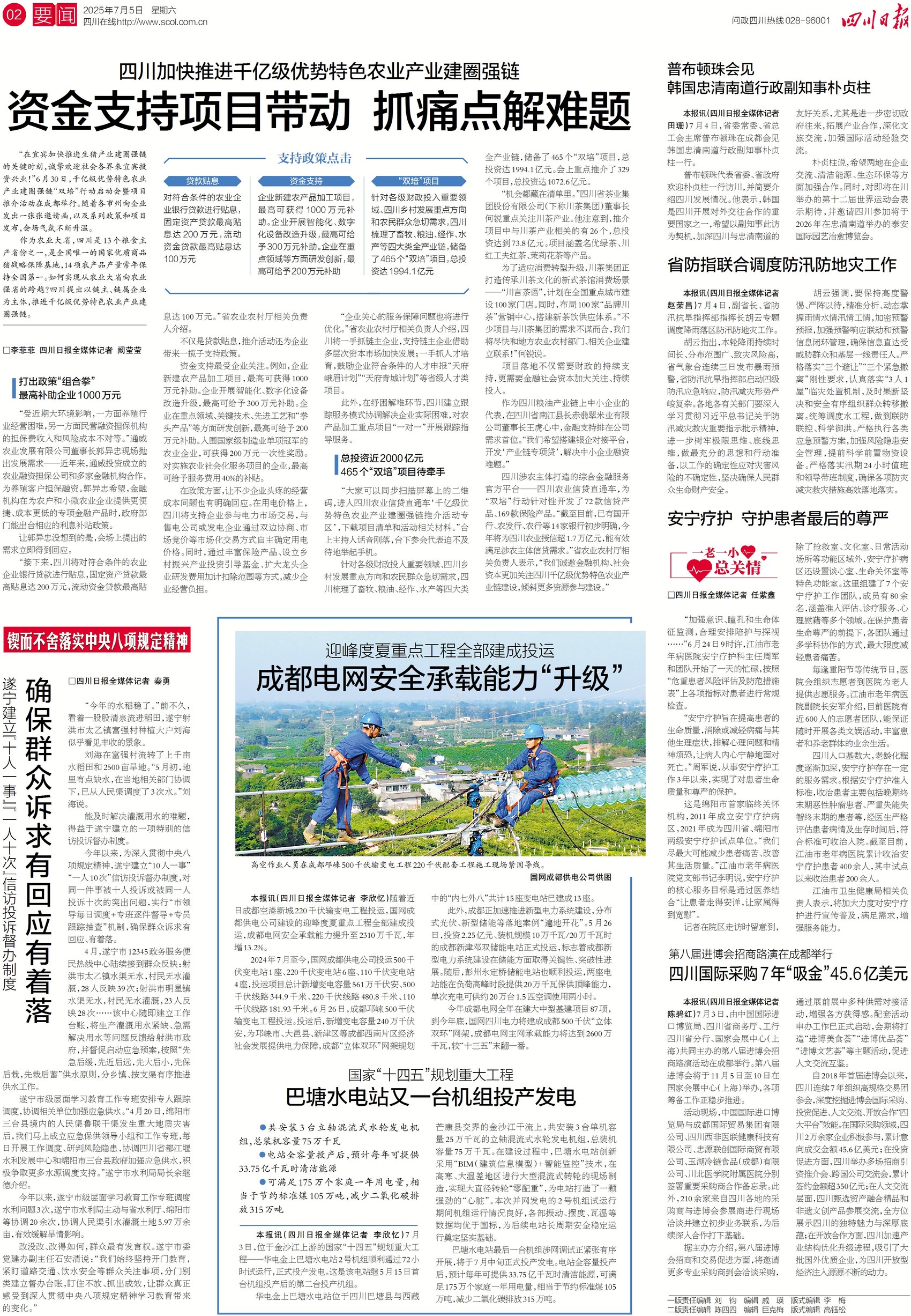四川是13个粮食主产省份之一,是全国唯一的国家优质商品猪战略保障基地,14项农产品产量常年保持全国第一。如何实现从农业大省向农业强省的跨越?6月30日召开的千亿级优势特色农业产业建圈强链“双培”行动启动会暨项目推介活动,从贷款贴息、资金支持、“双倍”项目等多方面发力。今日二版,了解详情。