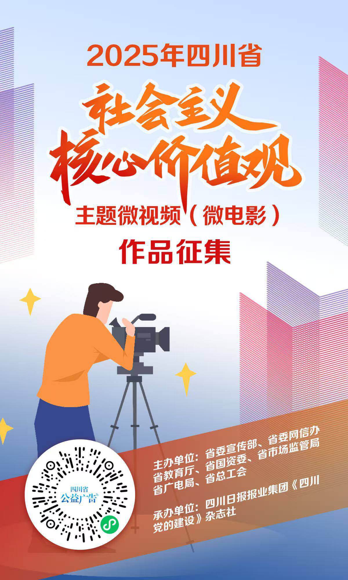 近日,由省委宣传部联合省委网信办、省教育厅、省国资委、省市场监管局、省广电局、省总工会主办的2025年四川省社会主义核心价值观主题微视频(微电影)作品征集展播活动正式启动。