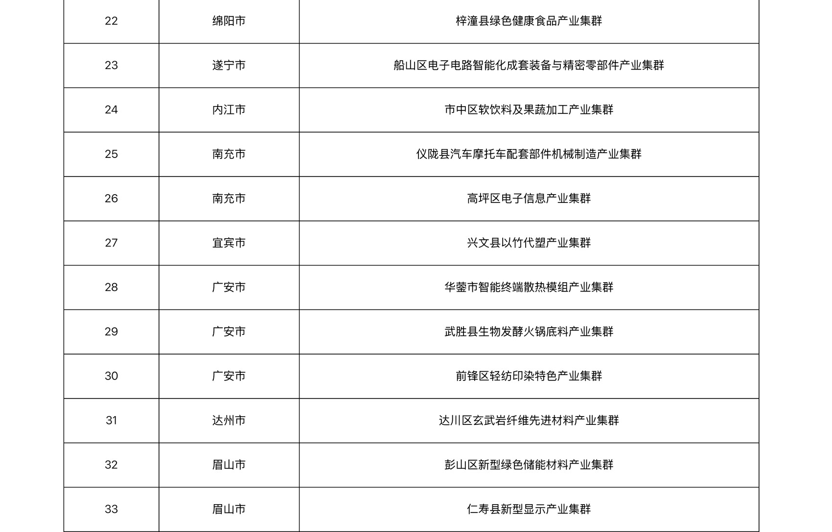此次入选的35个产业集群来自14个市(州),其中,与新材料相关的产业集群有13个,约占总数的37%;与装备制造和配套相关的产业集群有8个,约占23%。“覆盖我省六大优势产业,具有四川特色。”四川省经济和信息化厅相关负责人介绍。