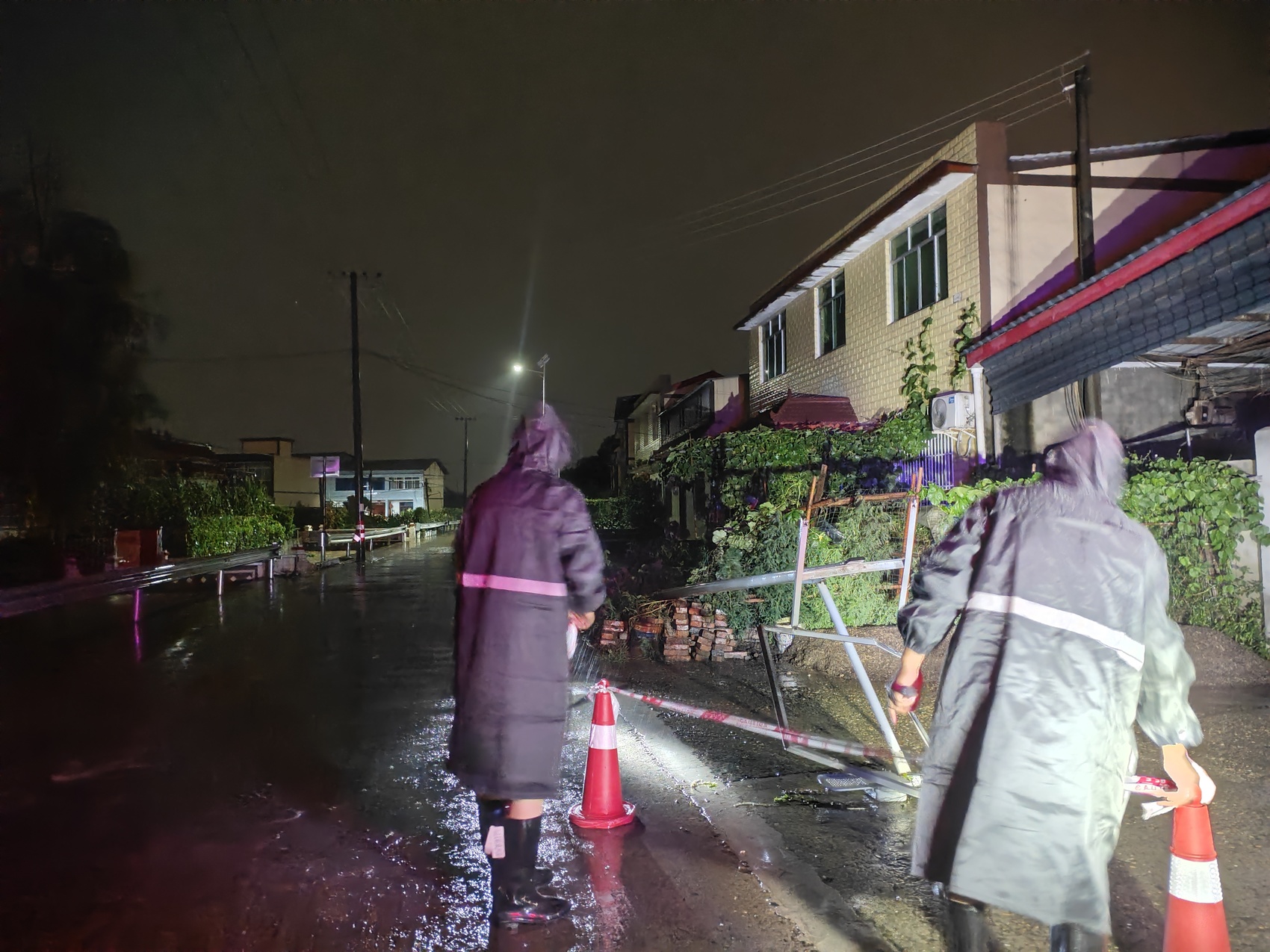 驻村干部、村社干部积极投入防汛工作中,针对辖区内地质灾害点、水库以及老旧房屋、低洼易涝区等重点区域开展拉网式排查,对积水路段、井盖、倒塌树木等危险区域放置警示标牌9处。雨后全面开展辖区内河道、道路清障,电路抢修等工作。