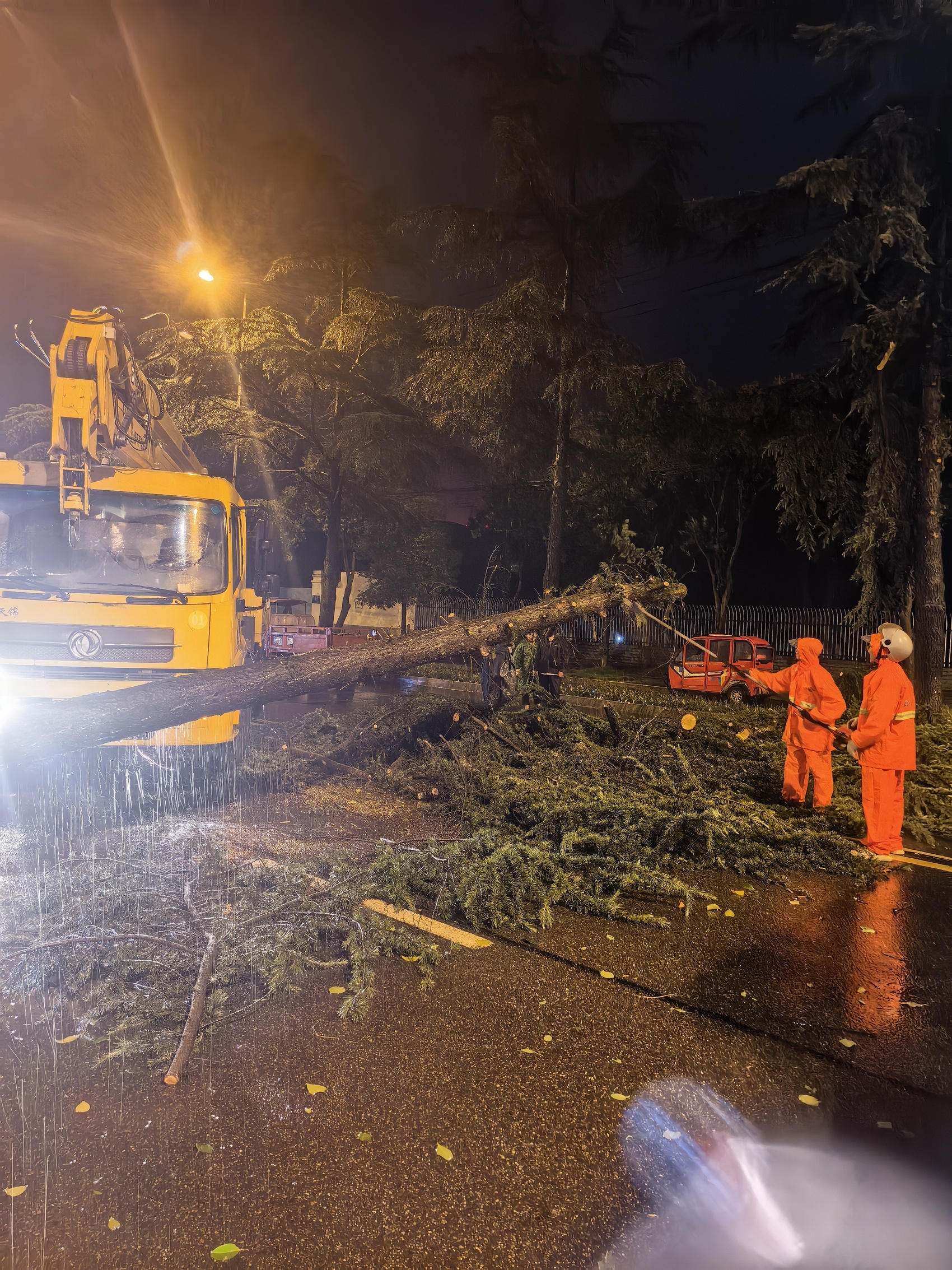 出动抢险救灾人员46人,处理阻断交通的树木倾倒、道路垮塌等险情80余处。