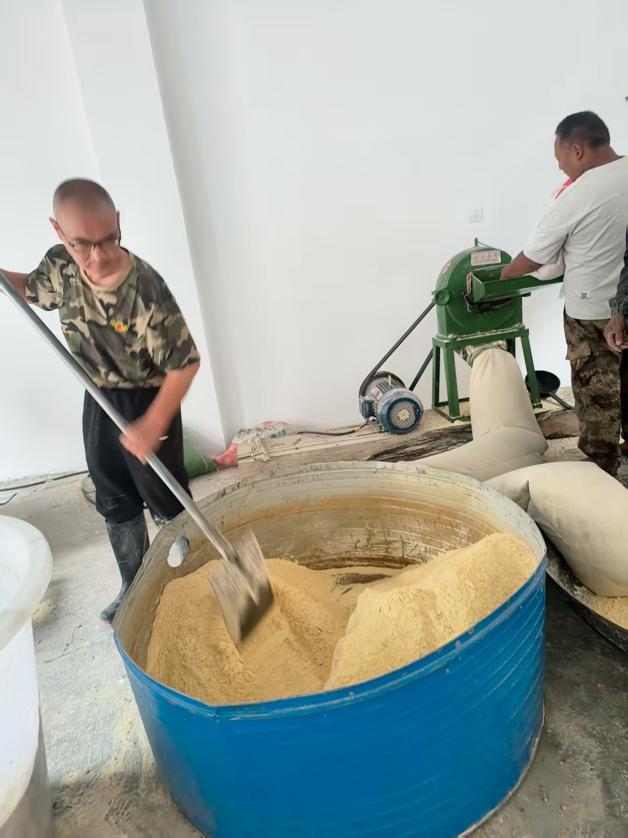 公司技术人员在进行搅拌饲料的示范。受访者供图