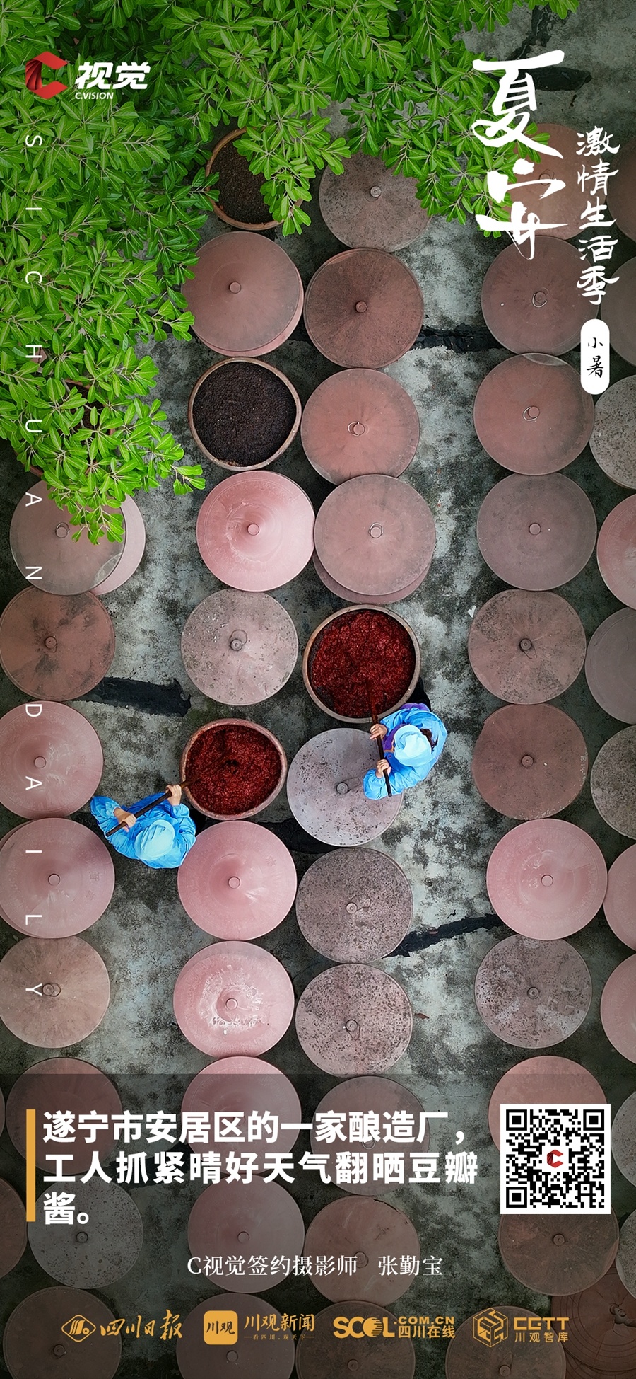 遂宁市安居区的一家酿造厂,工人抓紧晴好天气翻晒豆瓣酱。(C视觉签约摄影师 张勤宝 摄)