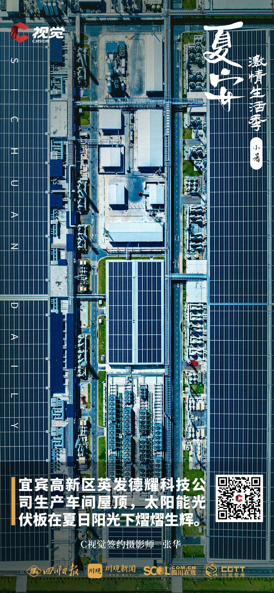 宜宾高新区英发德耀科技公司生产车间屋顶,太阳能光伏板在夏日阳光下熠熠生辉。(C视觉签约摄影师 张华 摄)