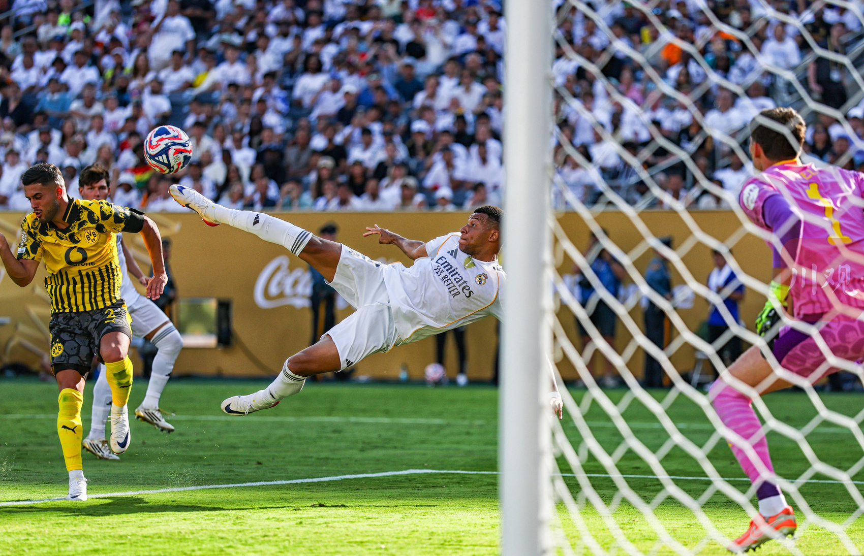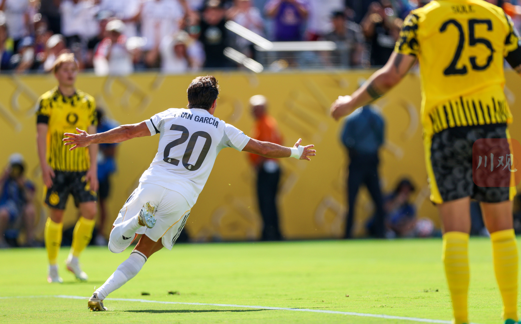 上半场,凭借贡萨洛·加西亚和弗兰·加西亚进球, 皇马2-0领先。下半场补时阶段高潮迭起,多特蒙德打入两球,姆巴佩侧钩破门,最终皇马3-2战胜多特蒙德,闯进世俱杯四强。
