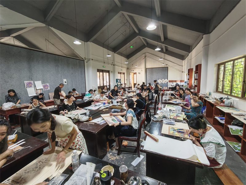 研修班学员在学习制作水印版画作品(图据四川省沫若艺术院)