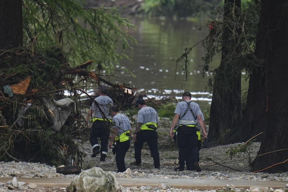 7月5日,在美国得克萨斯州亨特,人们在瓜达卢普河沿岸搜救。新华社/美联