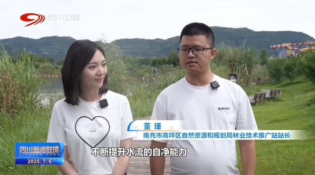 南充市高坪区自然资源和规划局林业技术推广站站长 董瑾:一方面我们通过清除河道里的淤泥和杂物,改善水流的走向,不断提升水流的自净能力;另外一方面,实施嘉陵江生态走廊建设,不断提升园区及近郊地区的绿化品质。