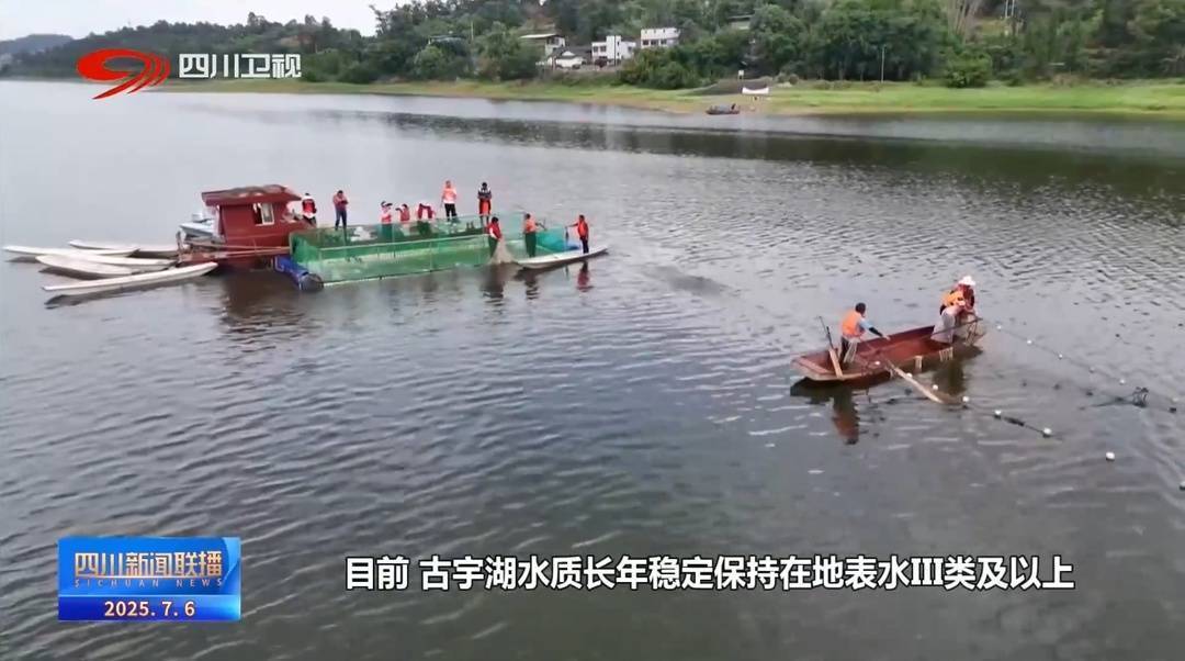 内江隆昌市河库事务总站站长 林波:目前,古宇湖水质长年稳定保持在地表水III类及以上。我们将进一步加强水库生态修复,提升古宇湖生态鱼的品牌效应和渔业价值,确保古宇湖水生态环境持续向好。