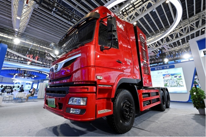 在2024中国(太原)国际能源产业博览会上拍摄的氢能重卡。新华社记者 杨晨光 摄