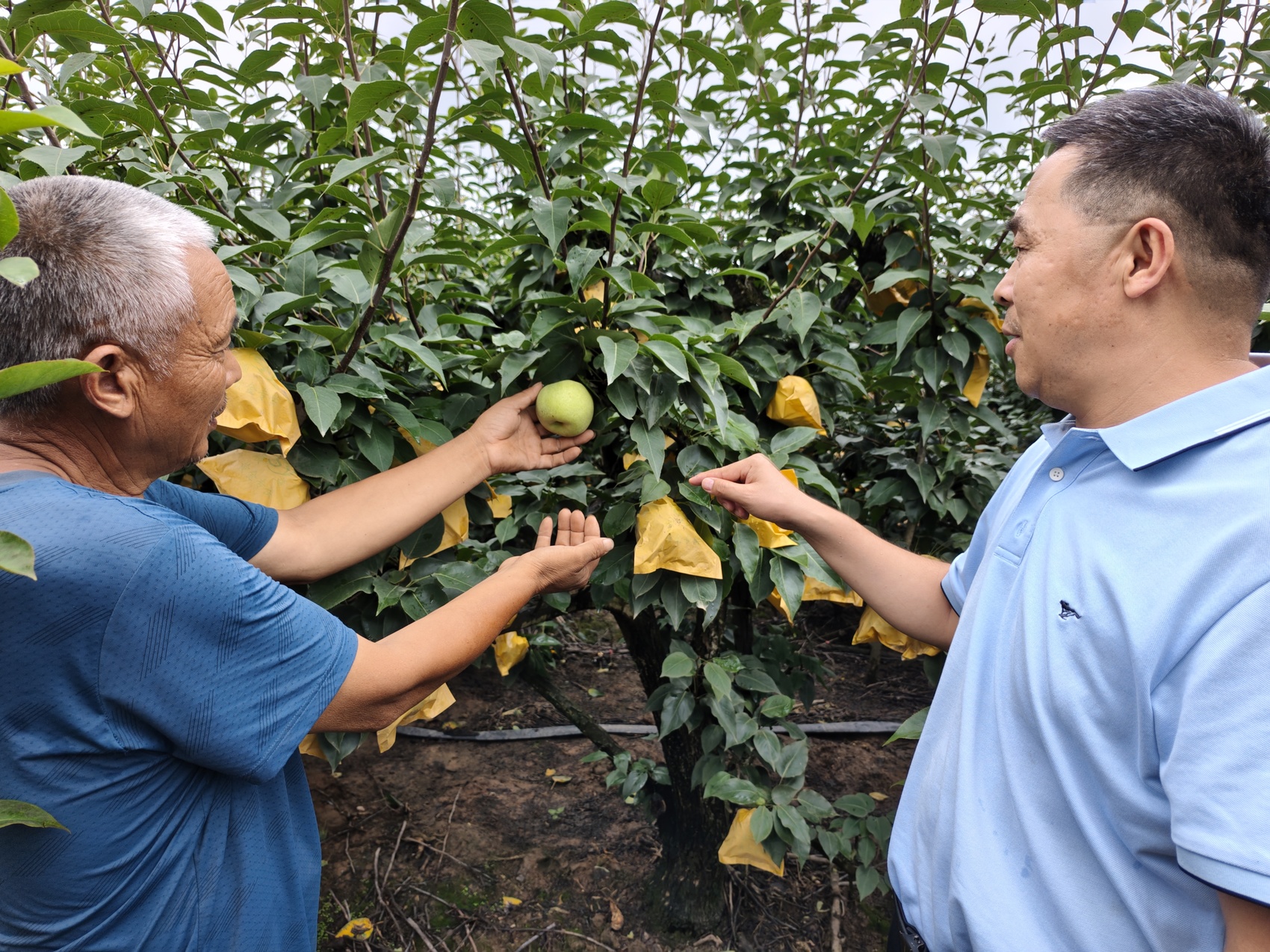 近5年来,樊光神的合作社削减了“绿宝石”,在国家梨产业技术体系成都综合试验站以及籍田街道办支持下,从几亩示范起步到规模种植早熟梨新品种“苏翠1号”“翠玉”近100亩,单产、单价都大大超越了“绿宝石”。樊光神说:“今年3月,我们又在河南订了1000多株‘翠玉’苗子,将在8-9月在‘绿宝石’园子里,挖一窝补一窝,又可新栽100多亩。总之,逐步把‘绿宝石’淘汰掉。”