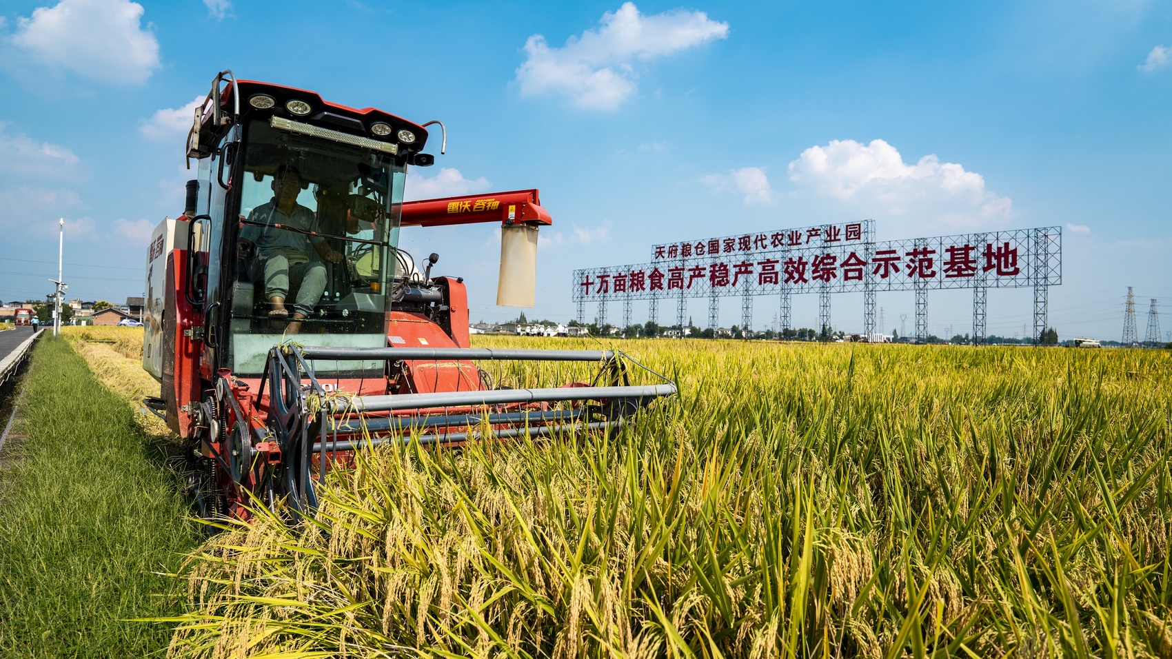 天府粮仓国家现代农业产业园水稻收割现场。成都市农业农村局供图