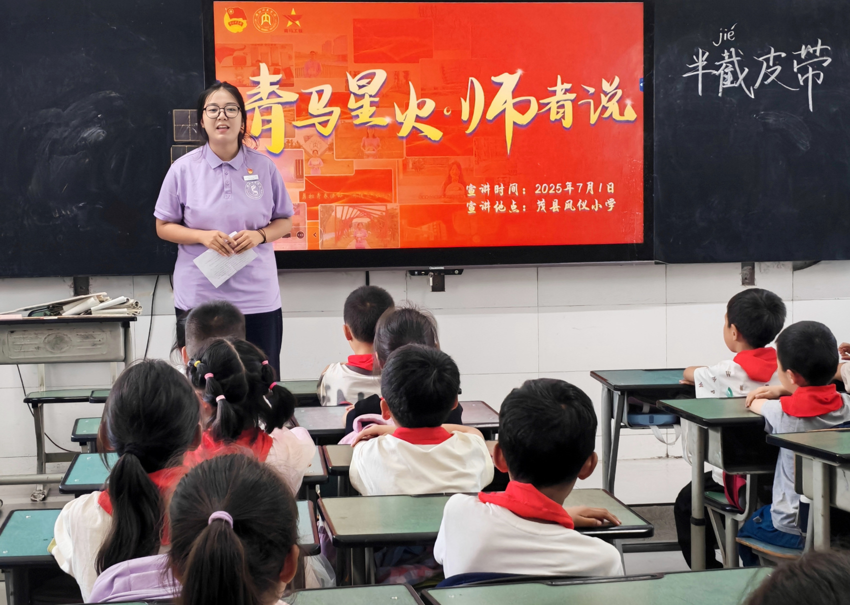 随后,团队成员走进七一民族中学、八一中学和凤仪镇小学,开展了一系列精彩纷呈的教育活动。在精心策划的“石榴籽心向党——民族少年与百年荣光”主题宣讲活动中,成员们深情讲述红军长征途中与羌族群众之间“军民鱼水情”的感人故事,将党史学习教育与民族团结教育巧妙融合,让红色基因、民族团结的种子在青少年心中生根发芽。此外,团队成员还创新设计了“青马星火师者说”和“铸牢中华民族共同体意识”主题思政课,通过红歌传唱、互动游戏等活泼有趣的教学形式,将“中华民族一家亲”的理念深深植入青少年心中,引导各族学子紧密团结,如同石榴籽一般紧紧相依。