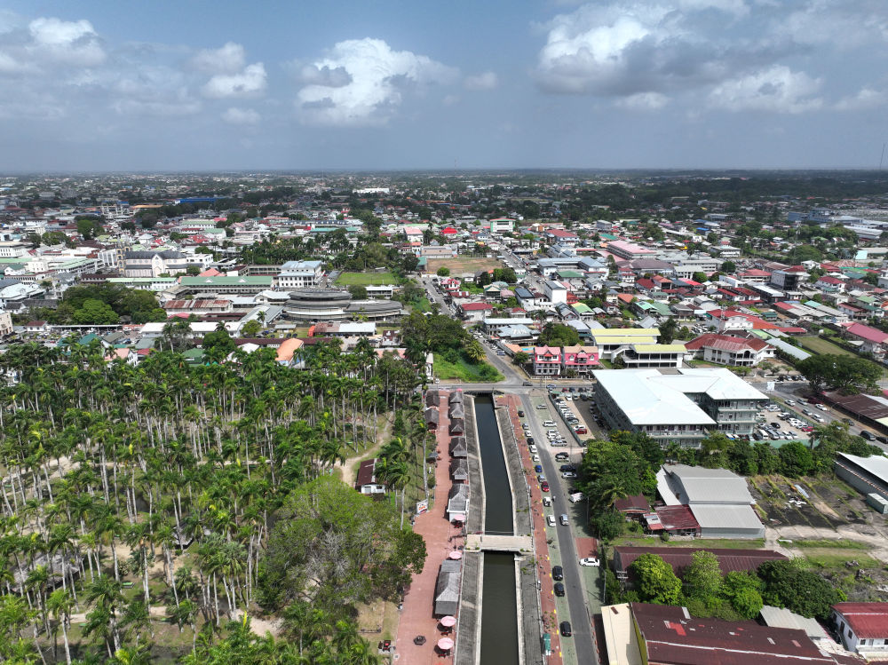 2024年4月6日拍摄的苏里南首都帕拉马里博城市景观(无人机照片)。新华社发