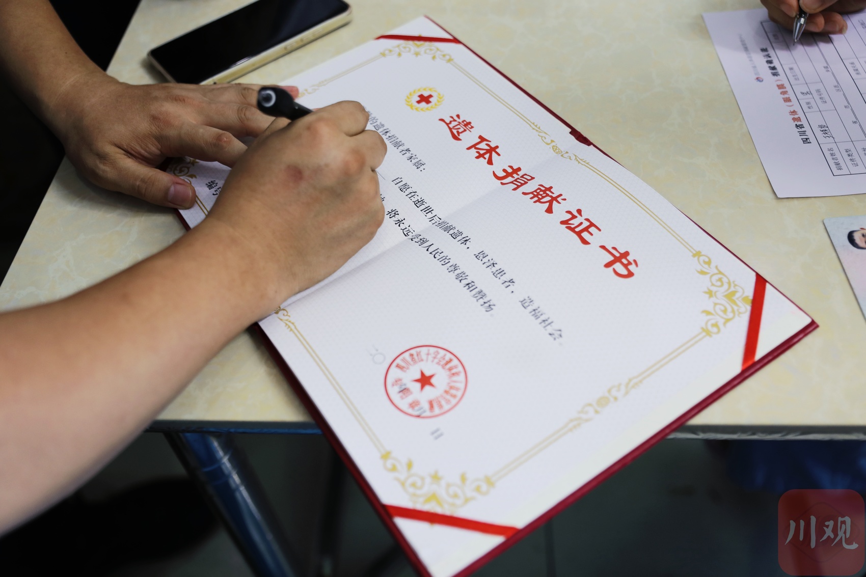 “父亲是签完捐献协议后,回到家才告诉我的这件事,当时我心里又震惊又复杂,一下子接受不了。” 王章宏介绍,六年前父亲被确诊肝癌,在漫长治疗中,病痛反复折磨,却未压垮他对生命价值的思考。一次偶然机会,父亲了解到了遗体捐献事宜,2023年5月1日,父亲主动联系上叙永县红十字会,签署了《遗体捐献志愿登记表》,成为一名遗体捐献志愿者。