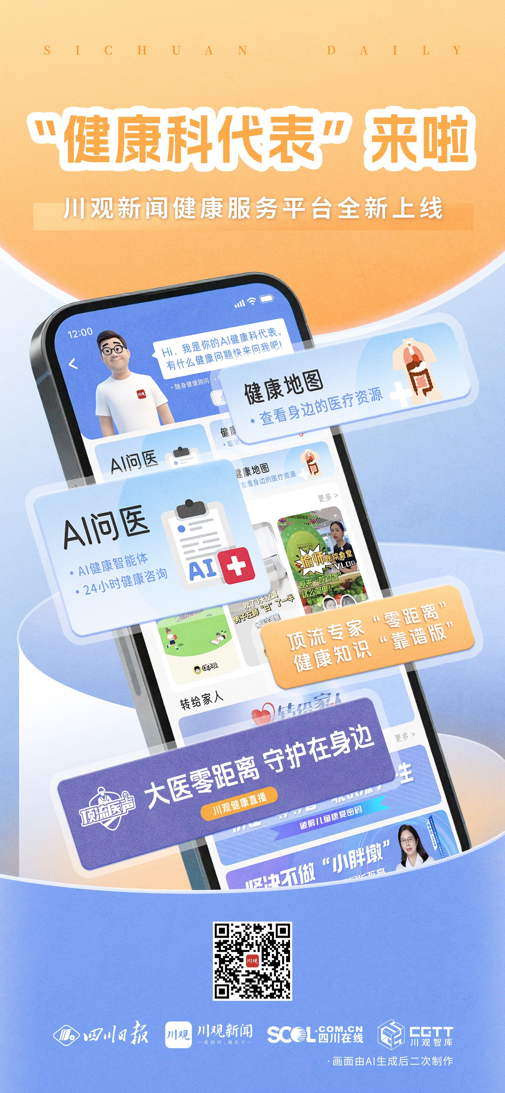 健康不是单选题,而是需要科学、便捷、贴心的“全方位守护”。 7月10日起,打开川观新闻,搜索“健康科代表”,让权威医护专家为你答疑,让AI智能为你解忧,让海量资源为你护航——从此,健康管理不再是难题,而是触手可及的日常。