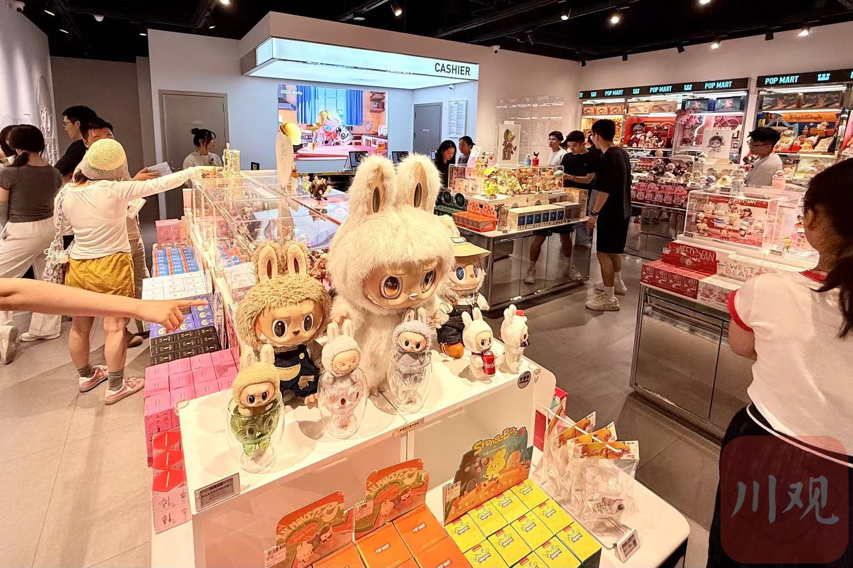 LABUBU相关搪胶毛绒玩具在泡泡玛特成都某门店内进行C位展示。赵泽宇 摄