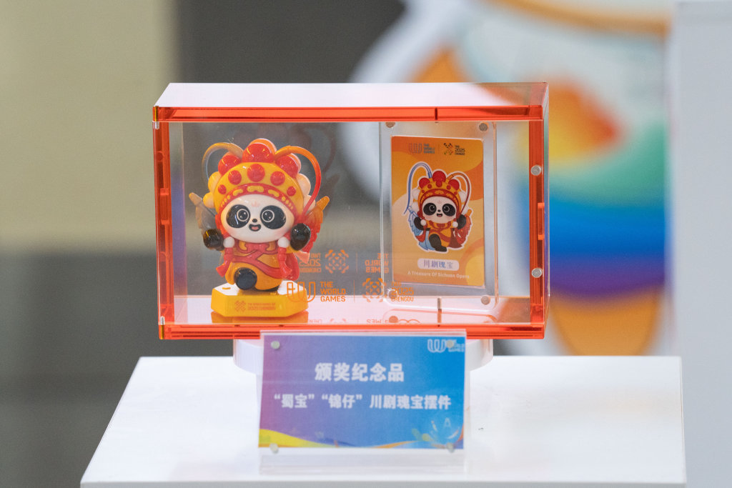 这是7月8日拍摄的成都世运会颁奖纪念品——“蜀宝”“锦仔”川剧瑰宝摆件。“蜀宝”“锦仔”以川剧变脸艺术为灵感,创新设计双面一体背对背的玩偶。