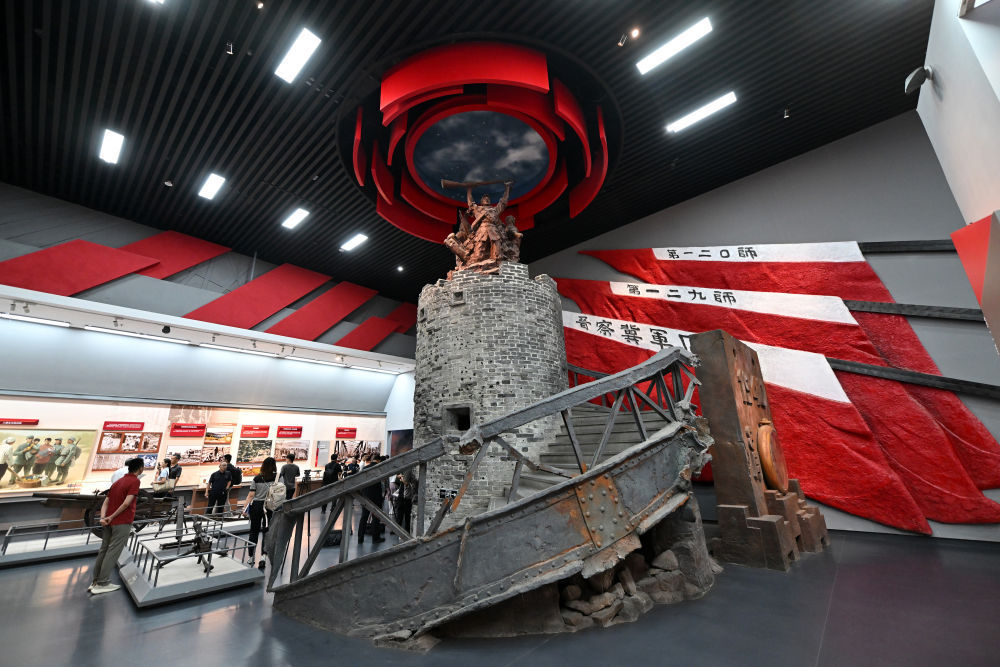 2025年7月7日上午,北京市第十二中学的少先队员参观纪念全民族抗战爆发88周年仪式暨《为了民族解放与世界和平》主题展览。新华社记者 陈晔华 摄